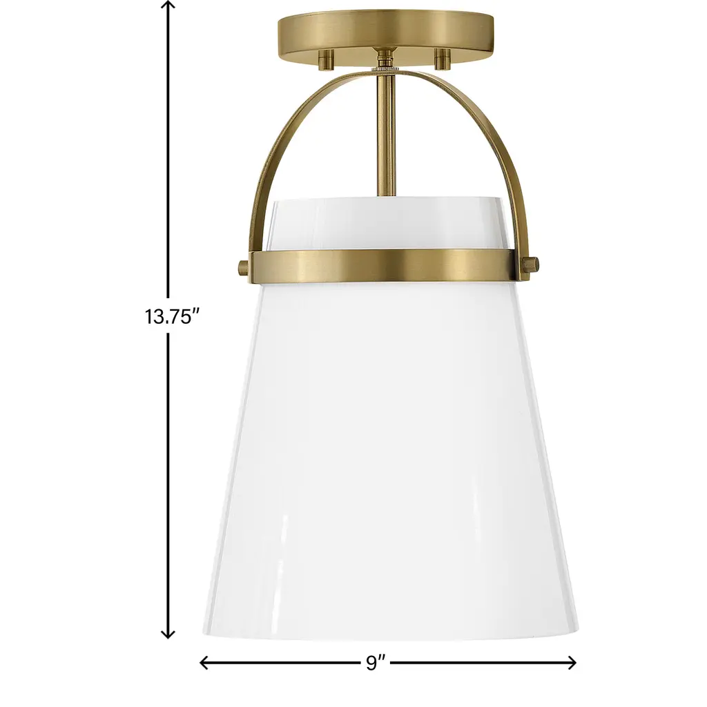 Tori Led 9 Inch Lacquered Brass Pendant Ceiling Light, Semi-Flush Mount