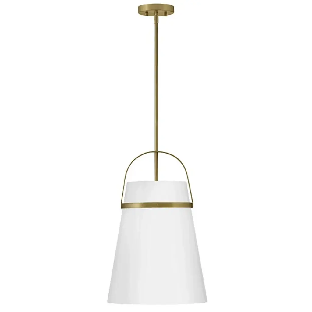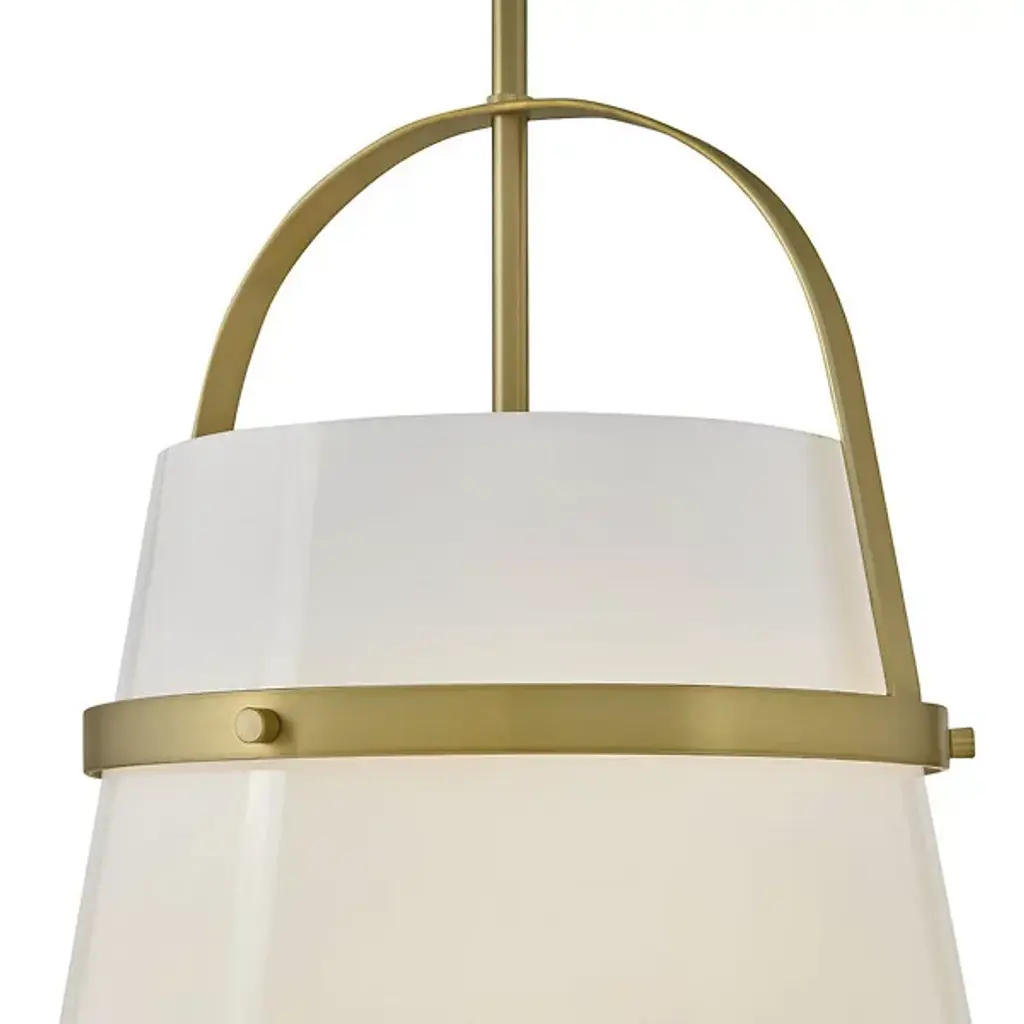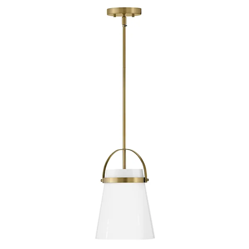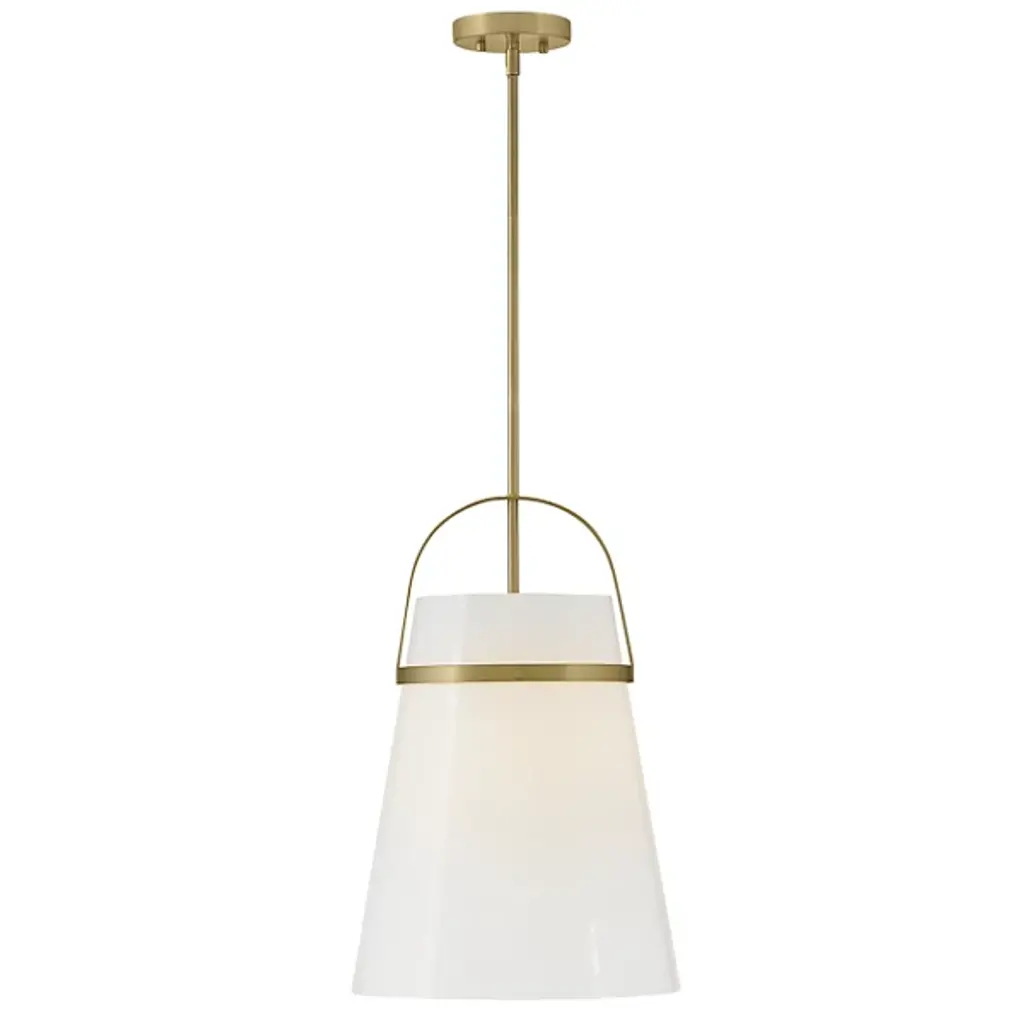 Take a strong line in home décor with the smooth, stylish design of the Tori Pendant / Semi-Flushmount from Lark. This fabulous transitional design is flexible enough to be mounted close to its low-profile canopy or deployed at the base of a slender stem. Each implementation uses a U-shaped brace and horizontal ring to retain a flaring shade of opal glass around the fixture’s single lamp. The smooth, translucent texture contrasts well with the metal structure around it, mellowing bright glare to a warm glow around the distributed splash of direct downlight that emerges from the shade’s open base.