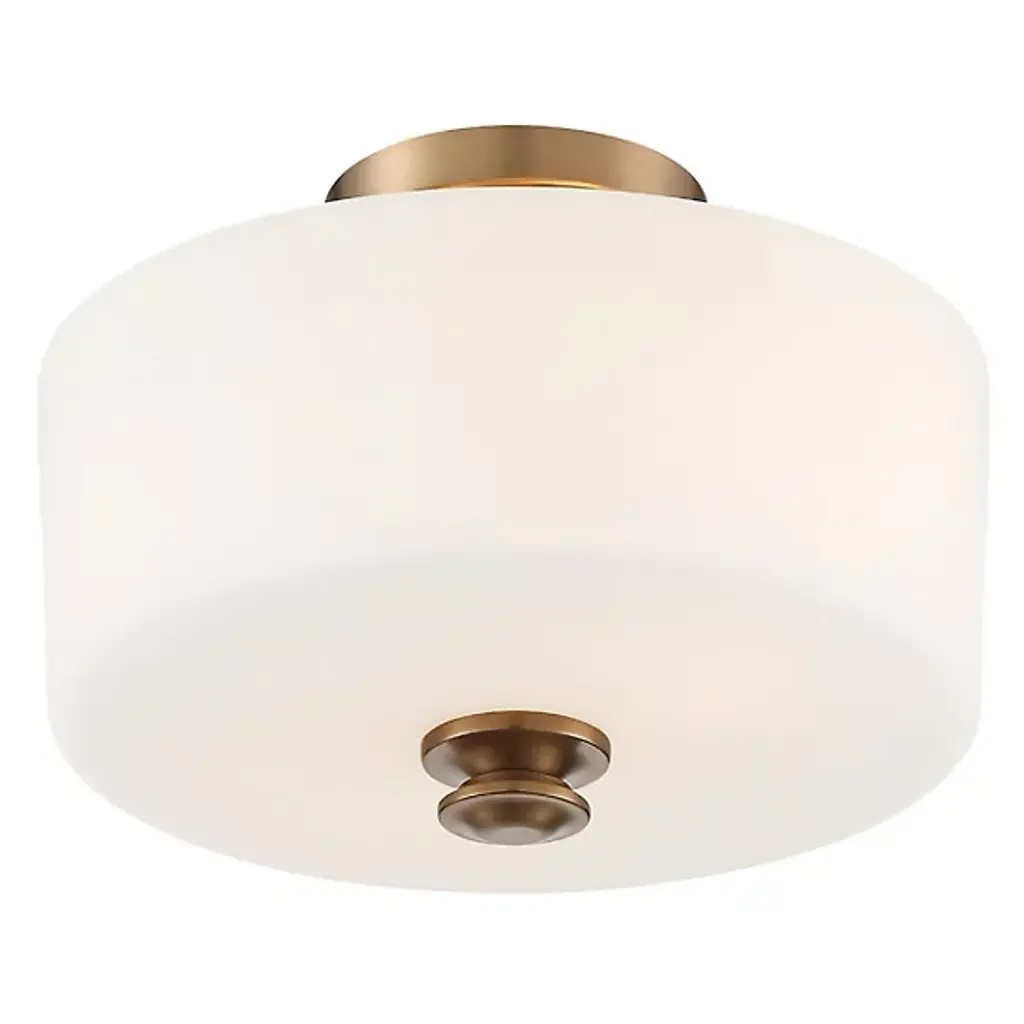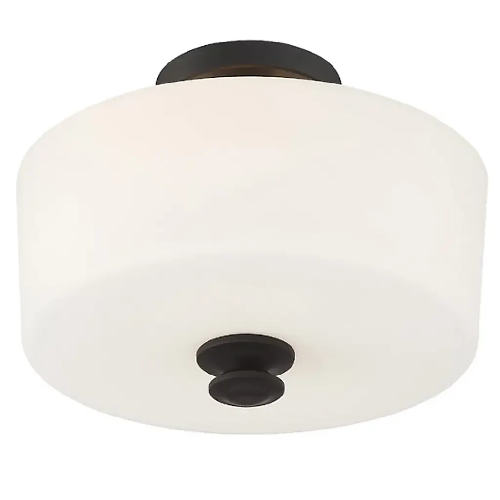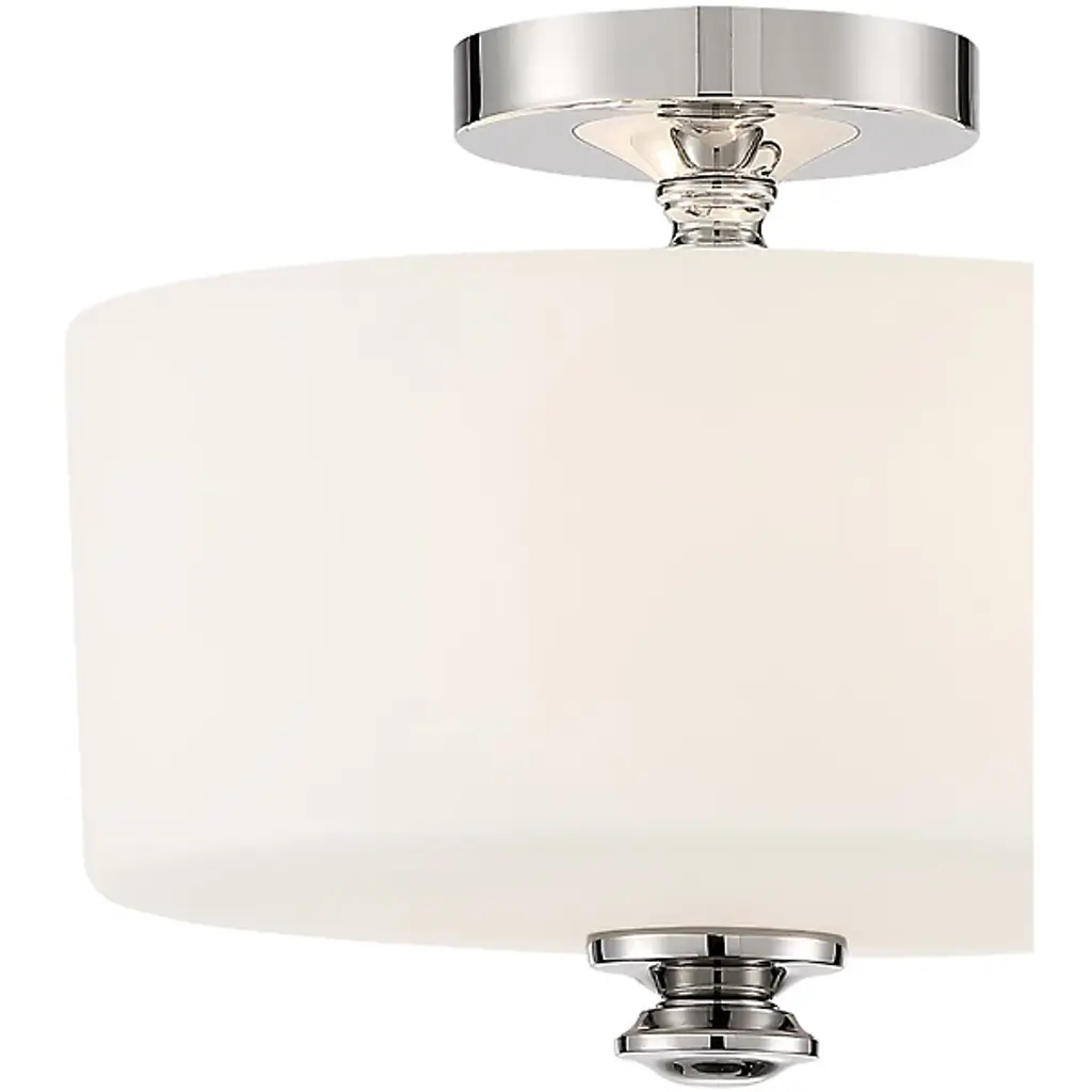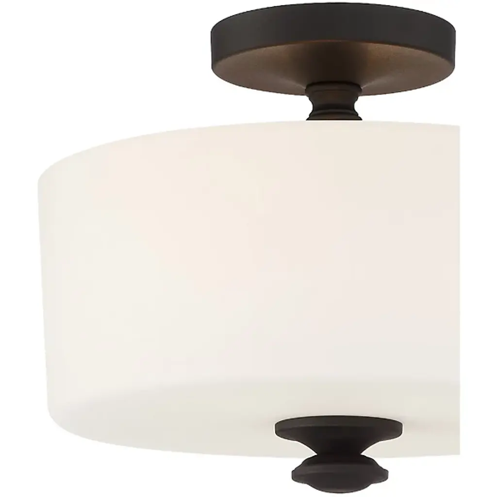Soft, simple, refined. Pair your rooms with the elegant transitional personality of the Travis Semi-Flushmount from Crystorama. It mounts to your ceiling with a solid steel canopy. The finish of the canopy carries to the finial at the base to deliver a stylish contrast to the shade. The shapes from top to bottom feature a rounded edge that’s pleasing on the eyes. Covering the bulbs inside, a deep-dish glass shade makes sure light reaching you is diffused with a glare-free quality. The piece turns on to produce a wide-spreading glow fitting for intimate or spacious rooms.