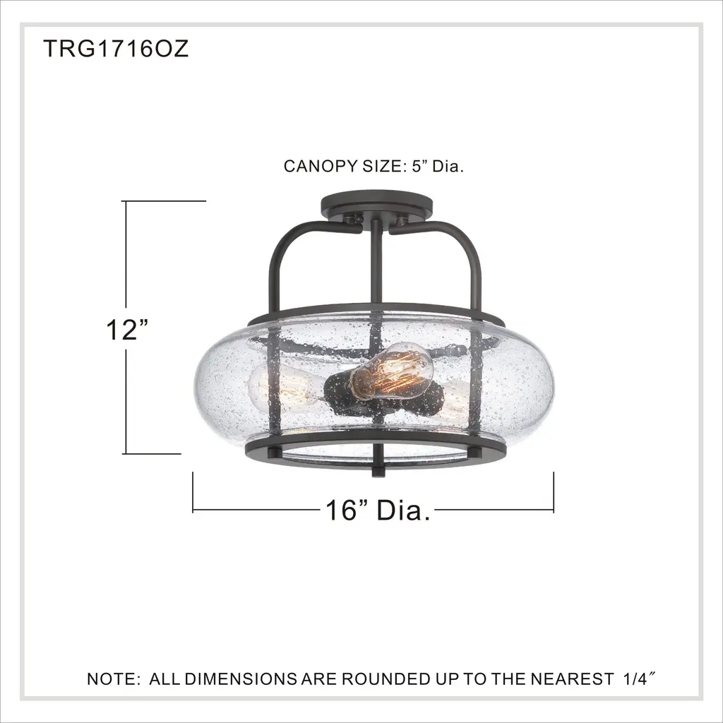 Trilogy 3 Light 16 Inch Old Bronze Semi-Flush Mount Ceiling Light