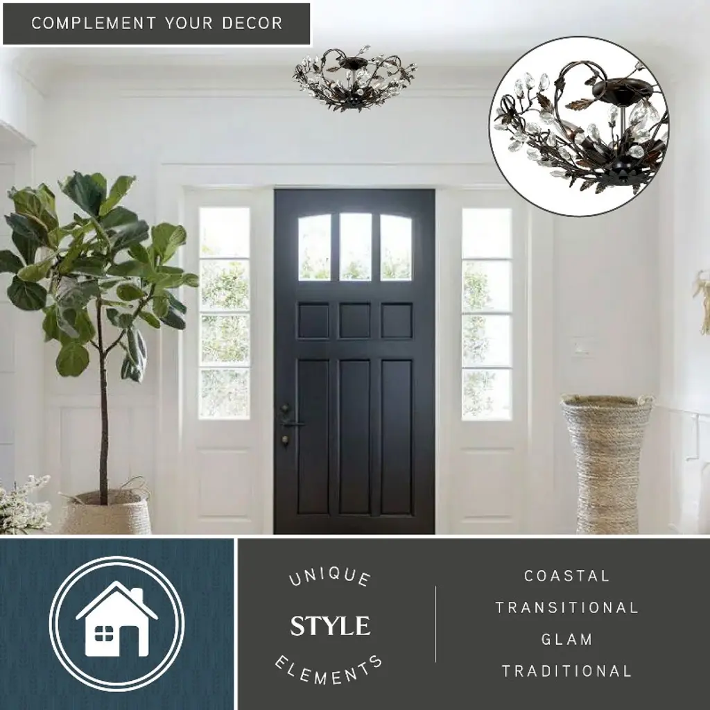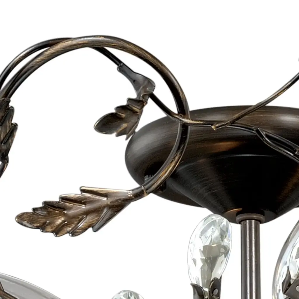 Vaxcel Jardin 19-in W Crystal Bronze Vintage Vine Semi Flush Mount Ceiling Light, Architectural Bronze And Gold Accents