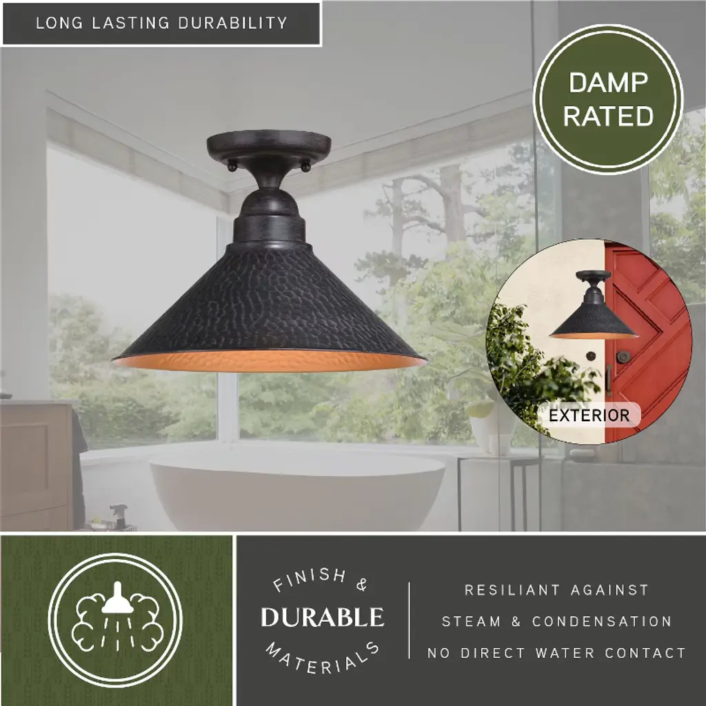 Vaxcel Outland Hammered Metal Bronze Rustic Outdoor Semi Flush Mount Ceiling Light