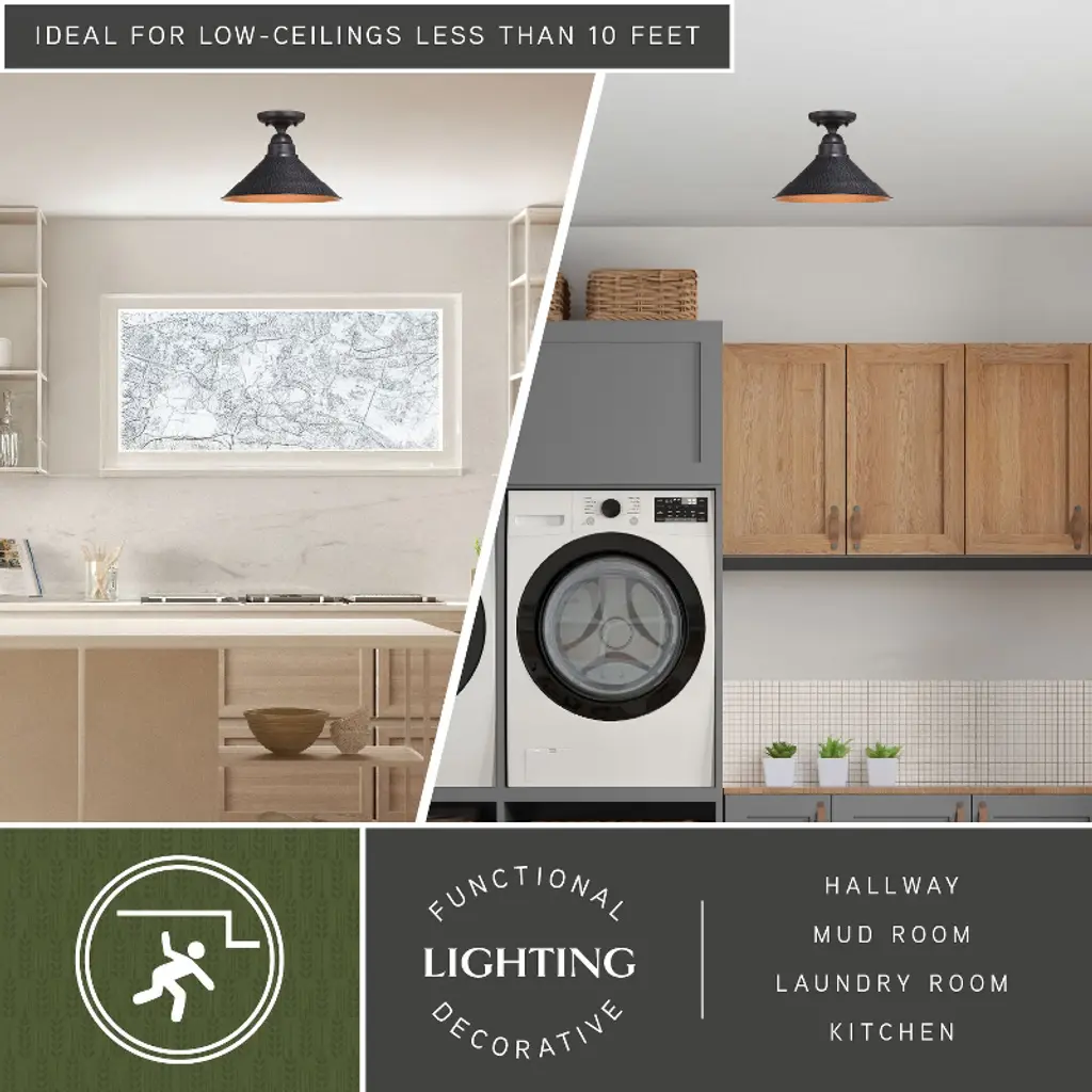 Outland 12-in. Outdoor Semi Flush Aged Iron and Light Gold