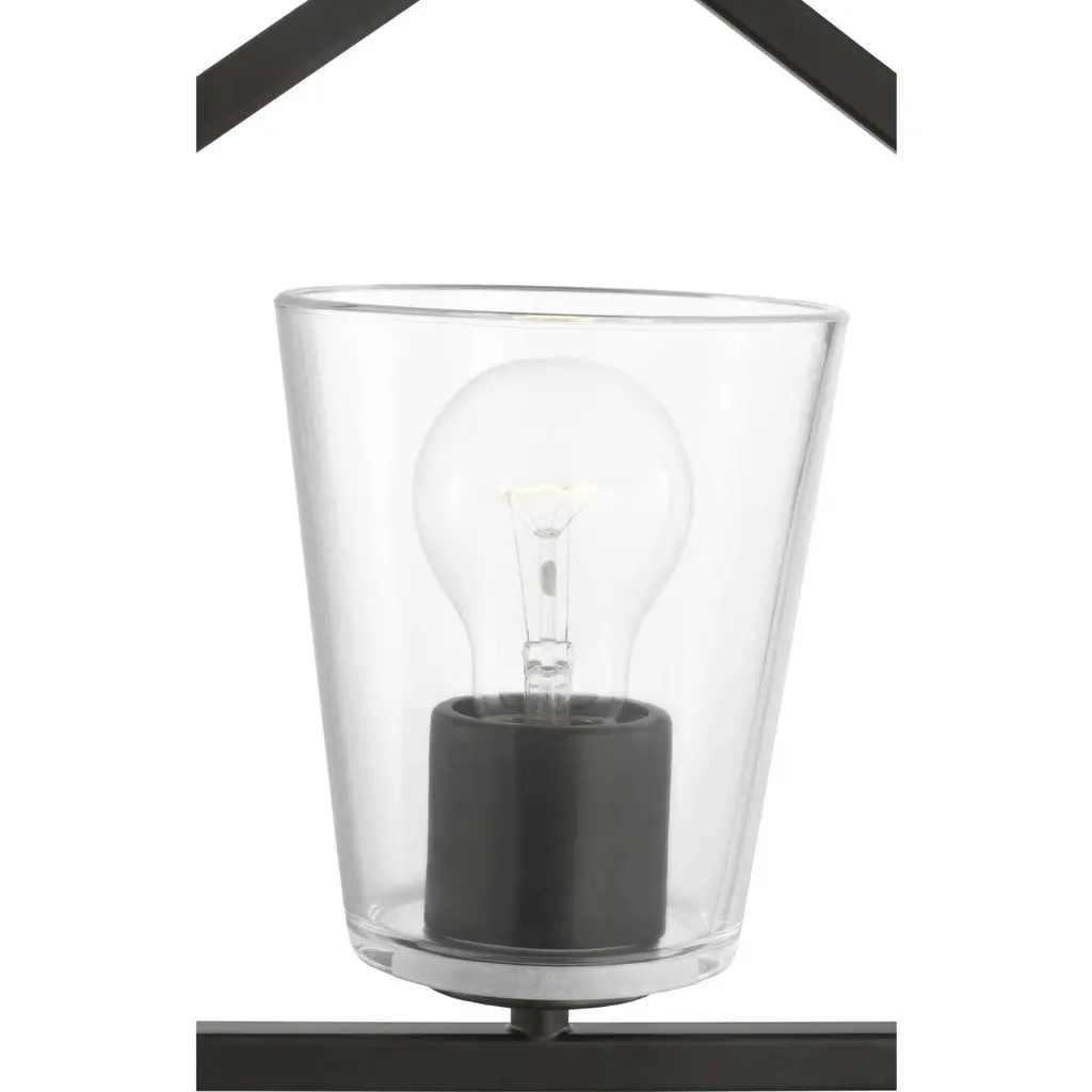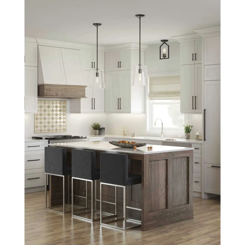 Elegantly extended, the Vertex semi-flush mount is composed of angular forms to create a bold design that perfectly complements halls, foyers and kitchens in modern interiors. Its distinctive silhouette is coated in a matte black finish. A clear glass shade offers bright illumination to spaces below.