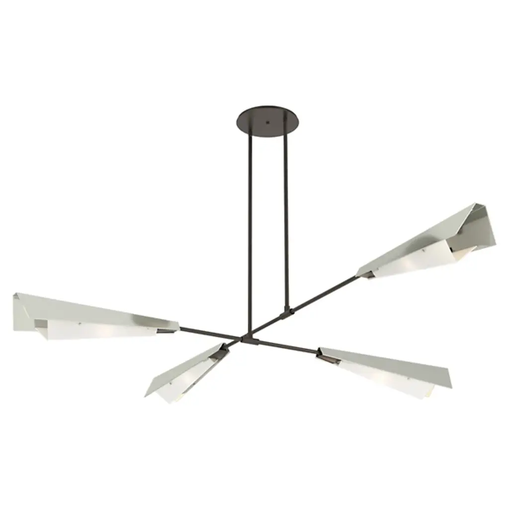 Introducing the Vertex Pendant/Semi-Flushmount from Hubbardton Forge, a transitional piece that effortlessly treads the line between modern and classic design. Its steel and glass construction provides a robust yet elegant look that is designed to stand the test of time. This light features a clever geometrical shade, accentuating its starburst/sputnik form which is sure to draw attention and spark conversation. Given its versatile design, this pendant light is perfect for various rooms such as dining areas, living rooms, or bedrooms. Note that this pendant can also be used as a semi-flushmount, providing adaptable illumination to fit your space.