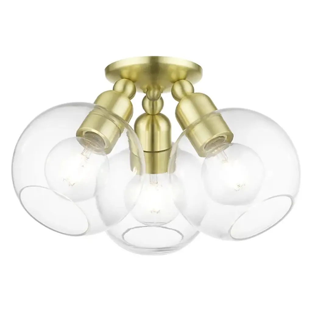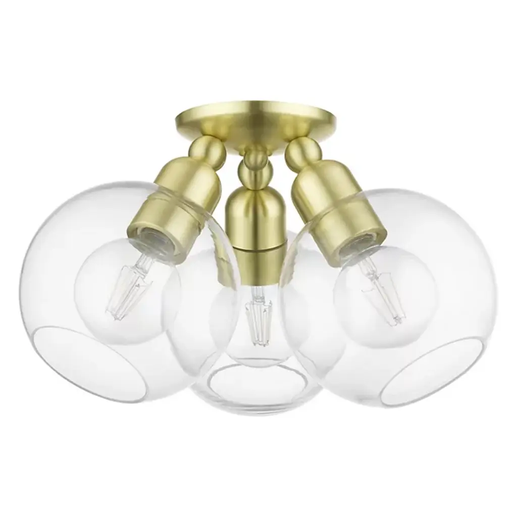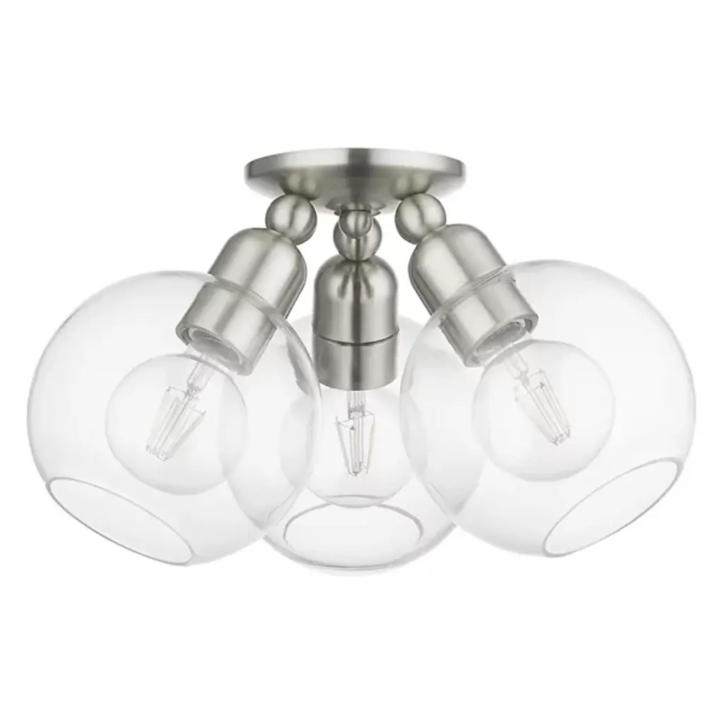Bring a refined lighting style to your interior design with the Violet 3-Light Semi-Flushmount by Alder & Ore. With a transitional appearance, the Violet makes a bold statement in the living space. This wall-mounted light fixture features glass globes which radiate incandescent light throughout your living space. Your Sem-Flushmout is properly secured by a metal canopy.