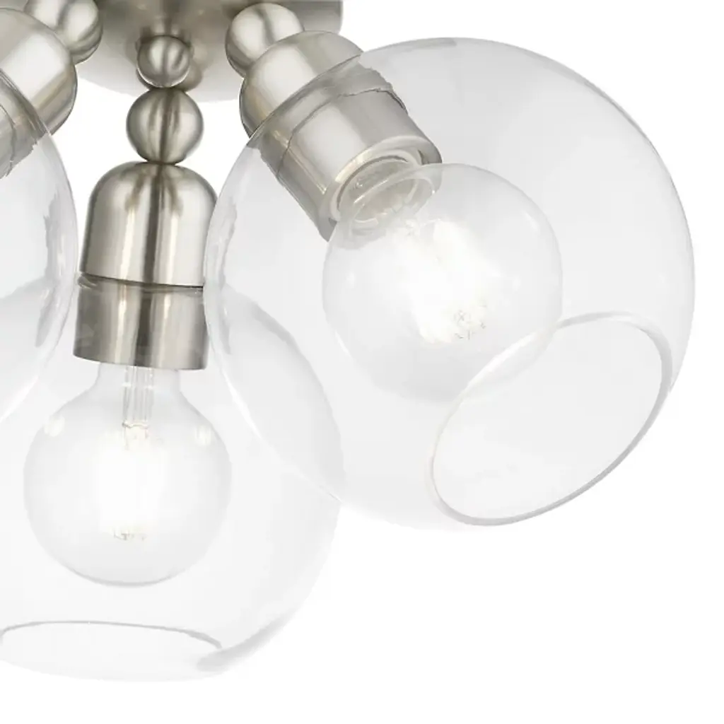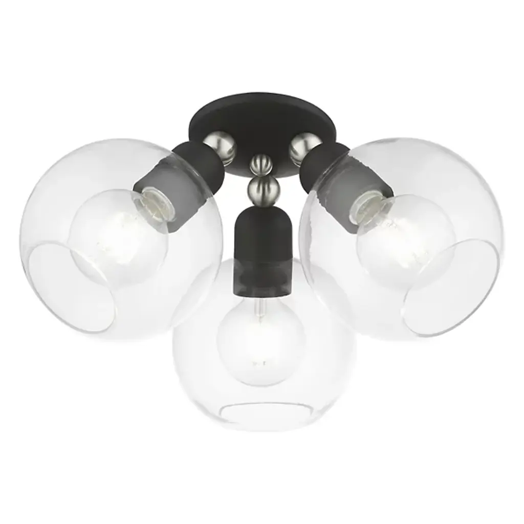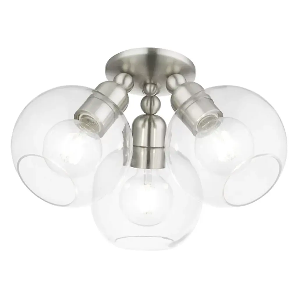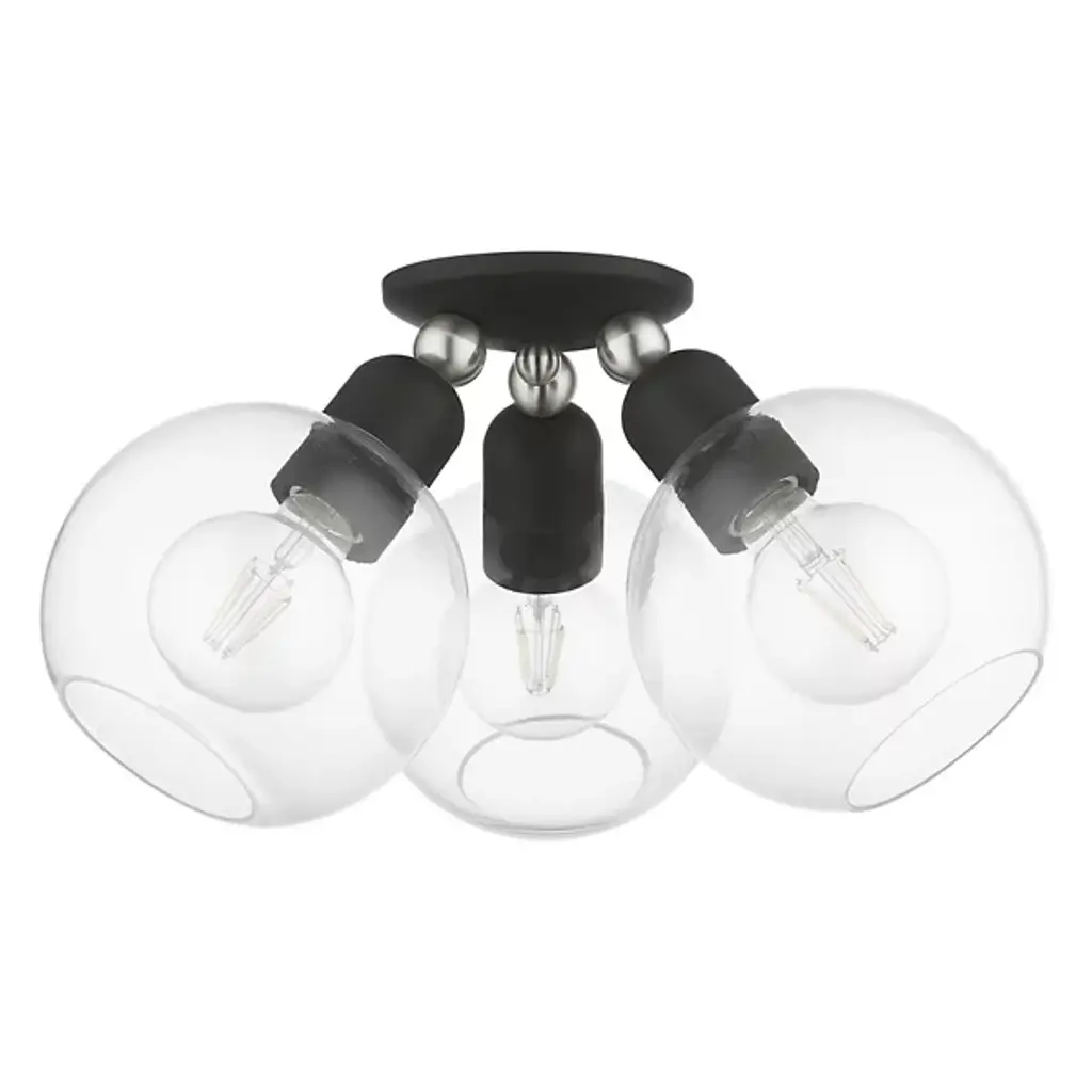 Bring a refined lighting style to your interior design with the Violet 3-Light Semi-Flushmount by Alder & Ore. With a transitional appearance, the Violet makes a bold statement in the living space. This wall-mounted light fixture features glass globes which radiate incandescent light throughout your living space. Your Sem-Flushmout is properly secured by a metal canopy.