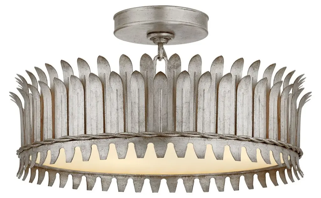 Visual Comfort Leslie Burnished Silver Leaf Frosted Glass Semi Flush Mount - 16"