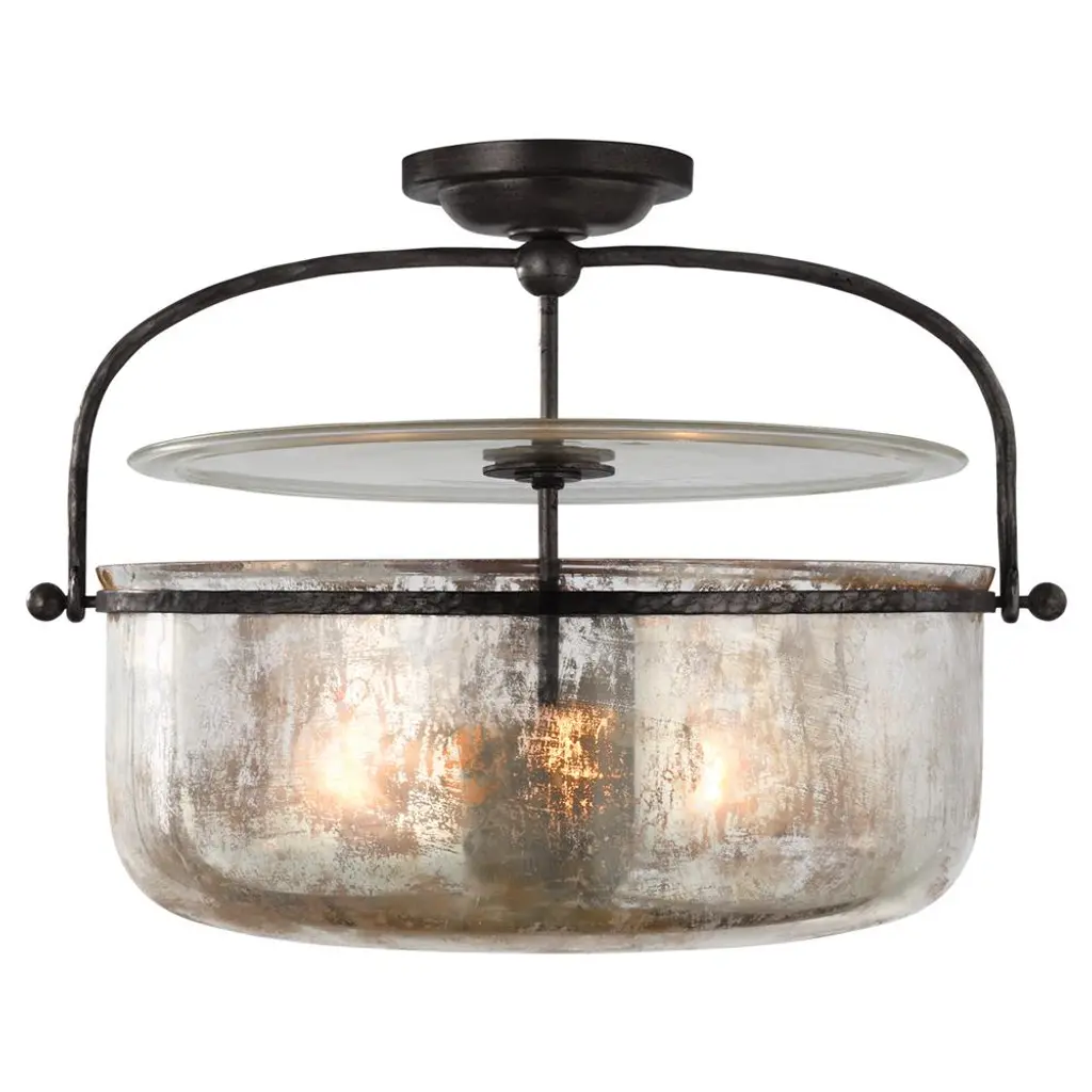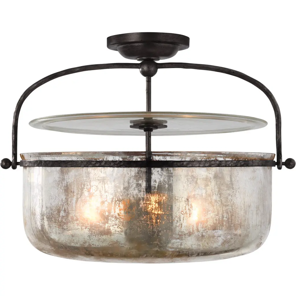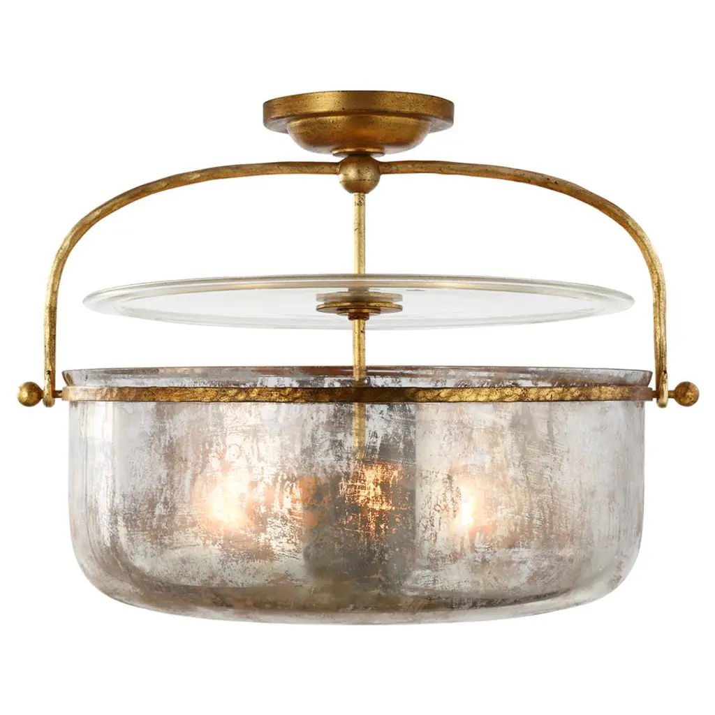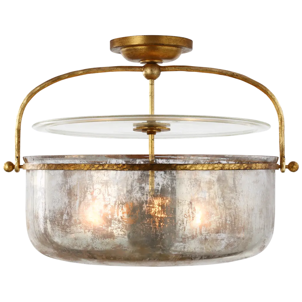 Visual Comfort Lorford French Gilded Iron Mercury Glass Semi Flush Mount - Large