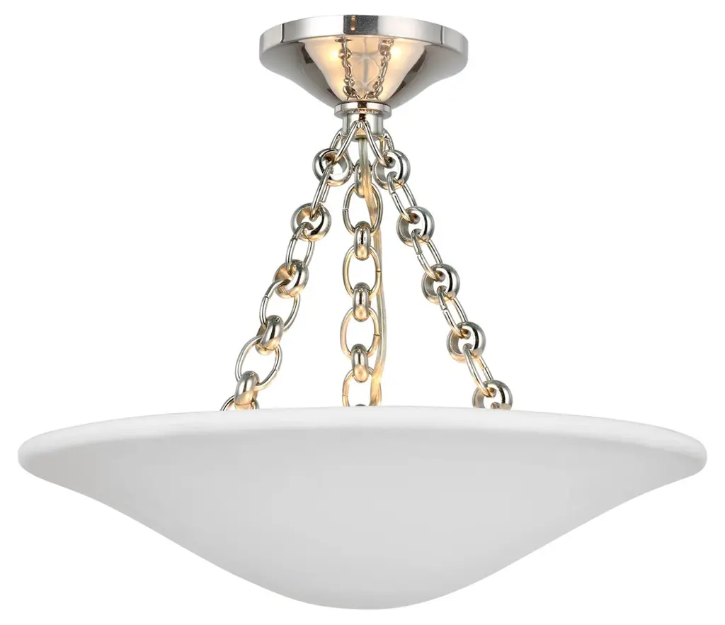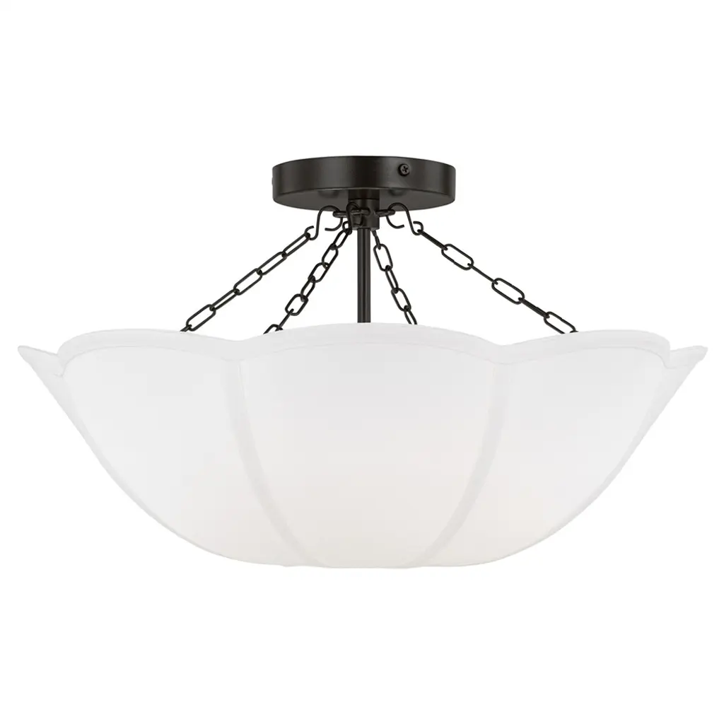 Visual Comfort Studio Stassi French Country Aged Iron White Scalloped Shade Semi Flush Mount