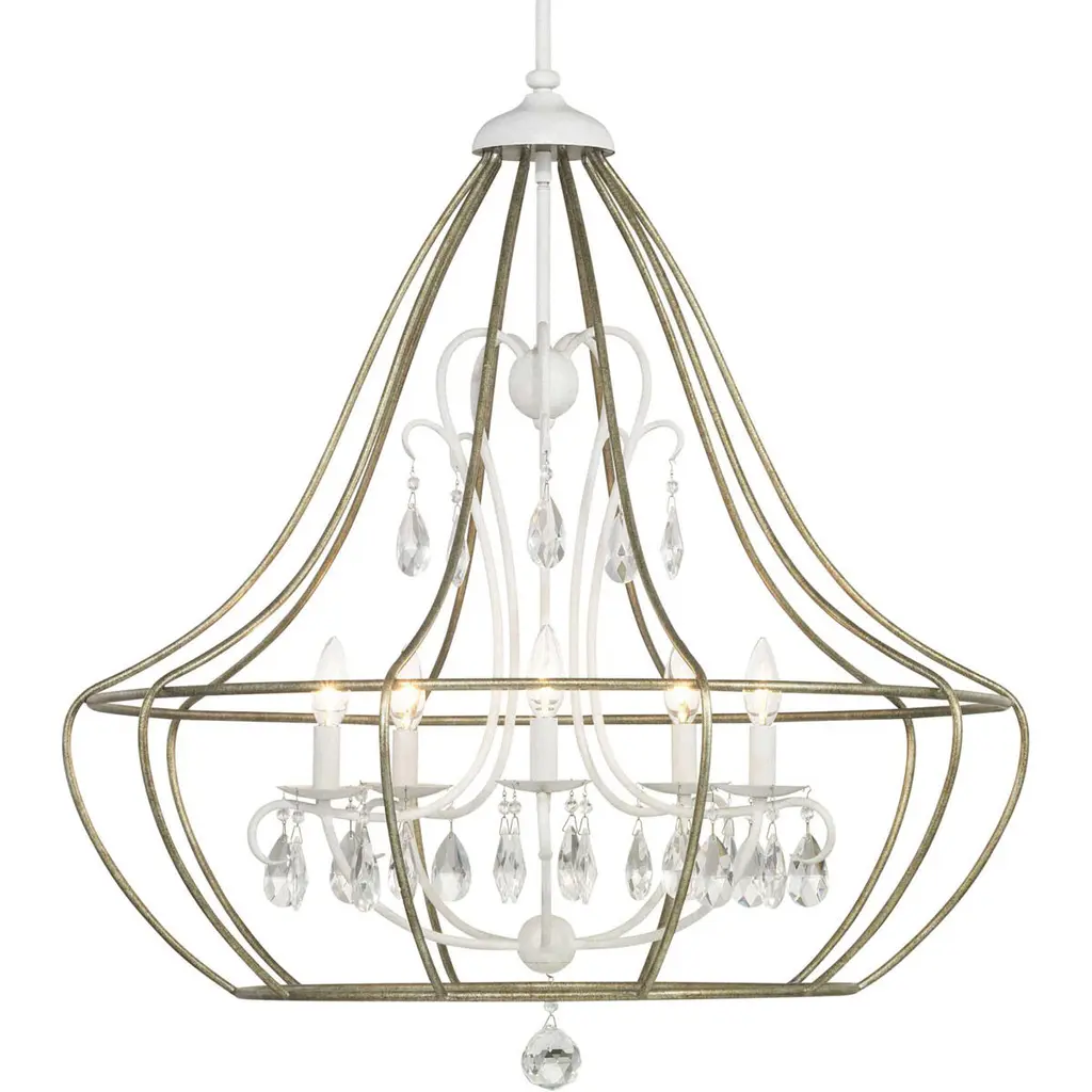 Parasol frames meet their crystal crush in this new pendant collection. Umbrella frames, carnival rides and birdcages clearly present in the design. But Continuing the frame lines with crystal is an unusal twist. Glam, coastal and cottage all coalesce together into one pretty, shimmery and airy pendant.