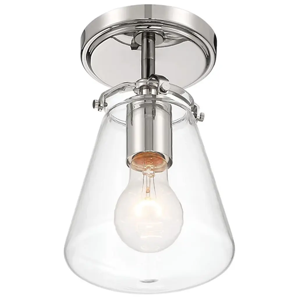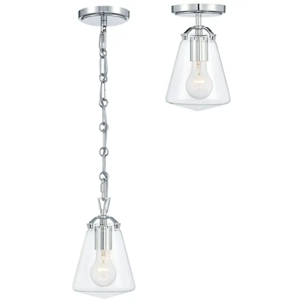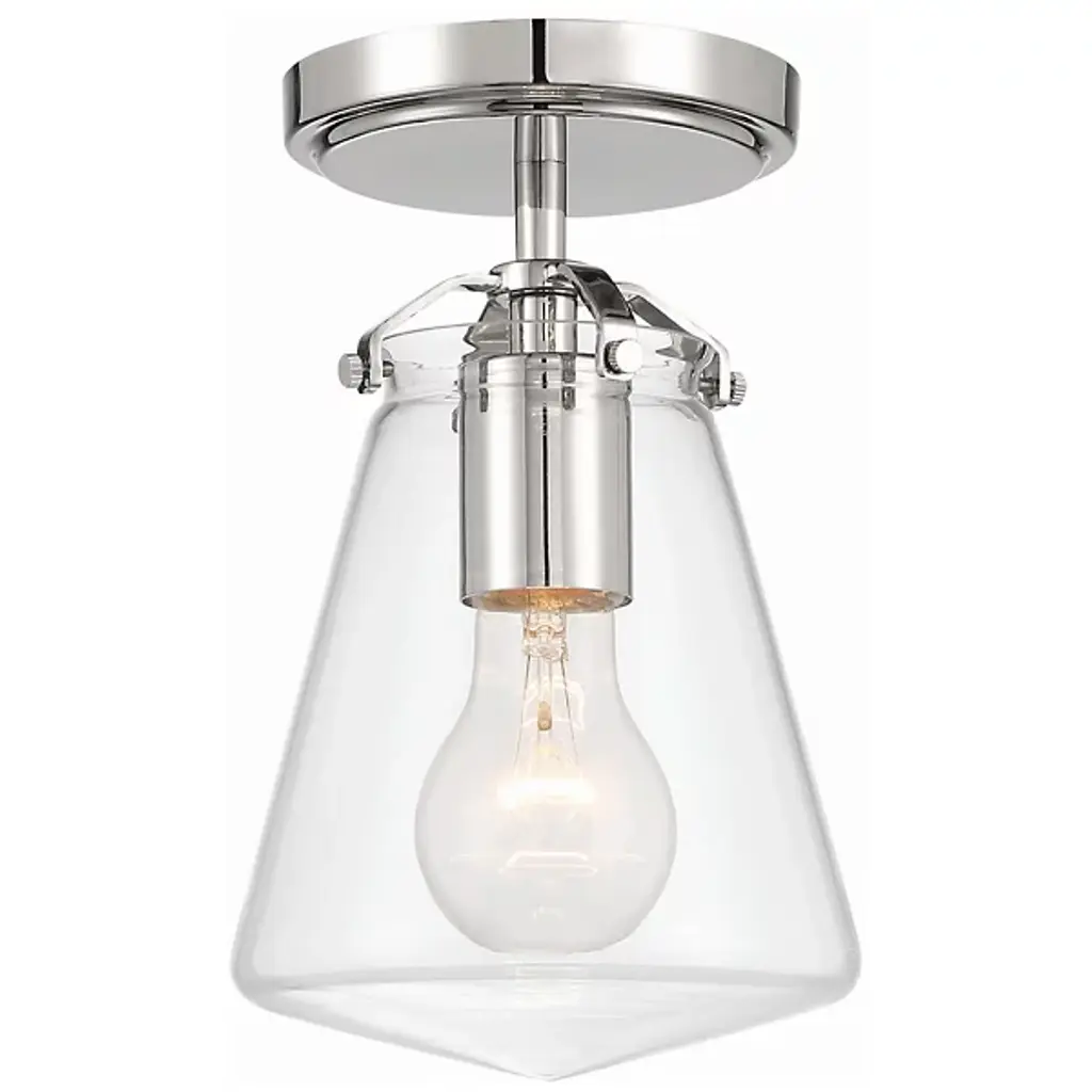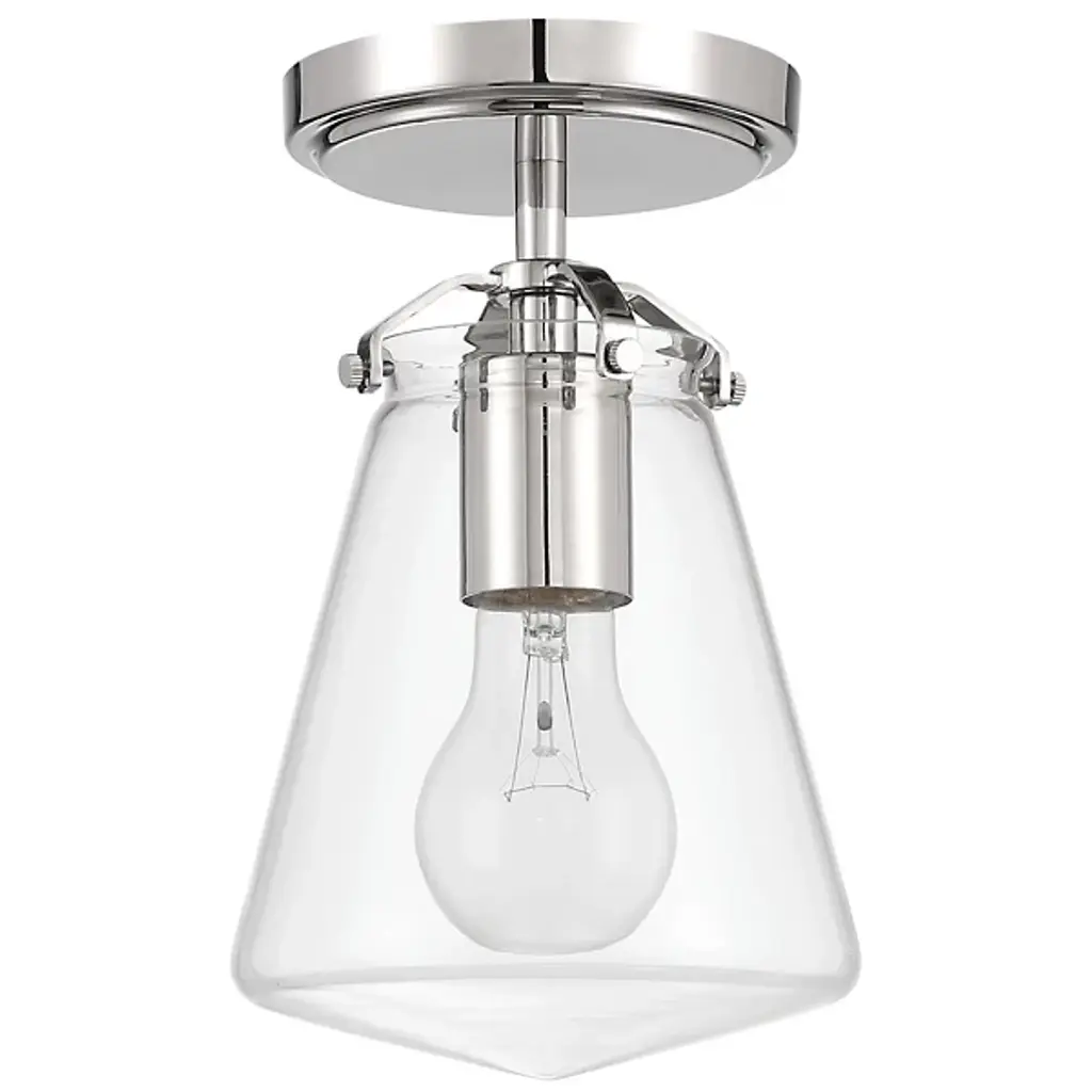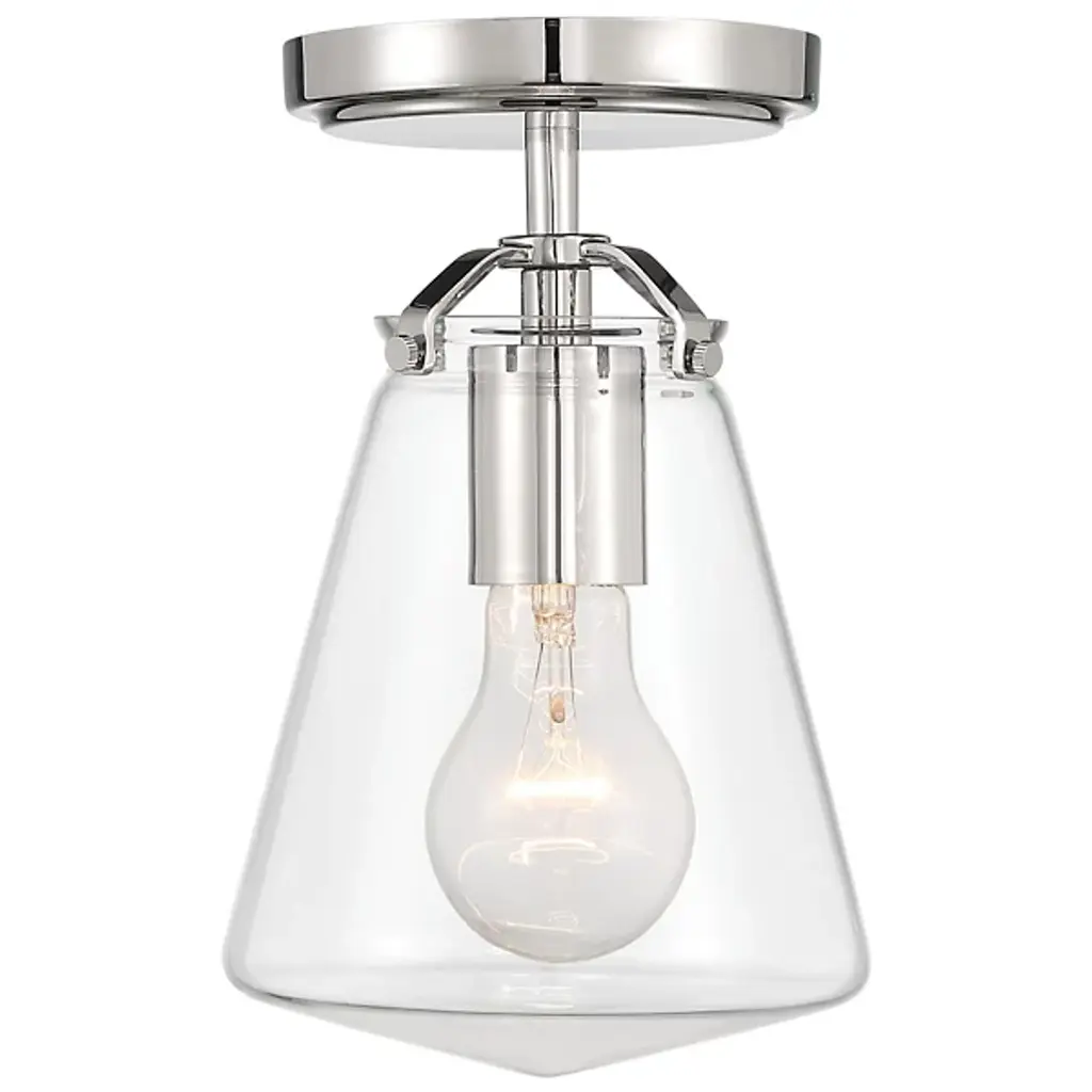 The Voss Semi Flushmount from Crystorama is crafted with meticulous attention to detail. Your semi-flushmount features a shade made of clear glass, exuding timeless elegance and refinement. The open design at the top of the shade allows for optimal illumination, creating a warm and inviting ambiance in your room. The shade is fastened to a slender arm stemming from a ceiling canopy. Voss has dimmable functionality when paired with a separately sold ELV dimmer.
