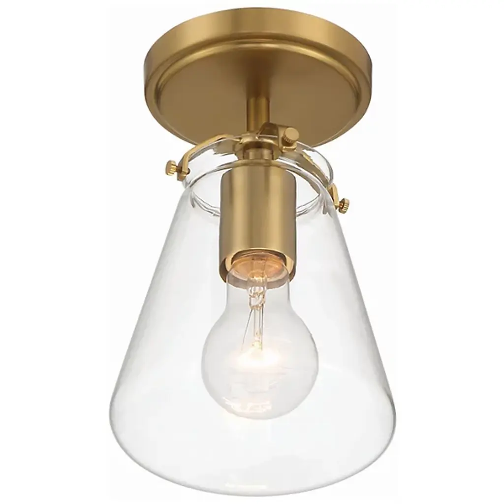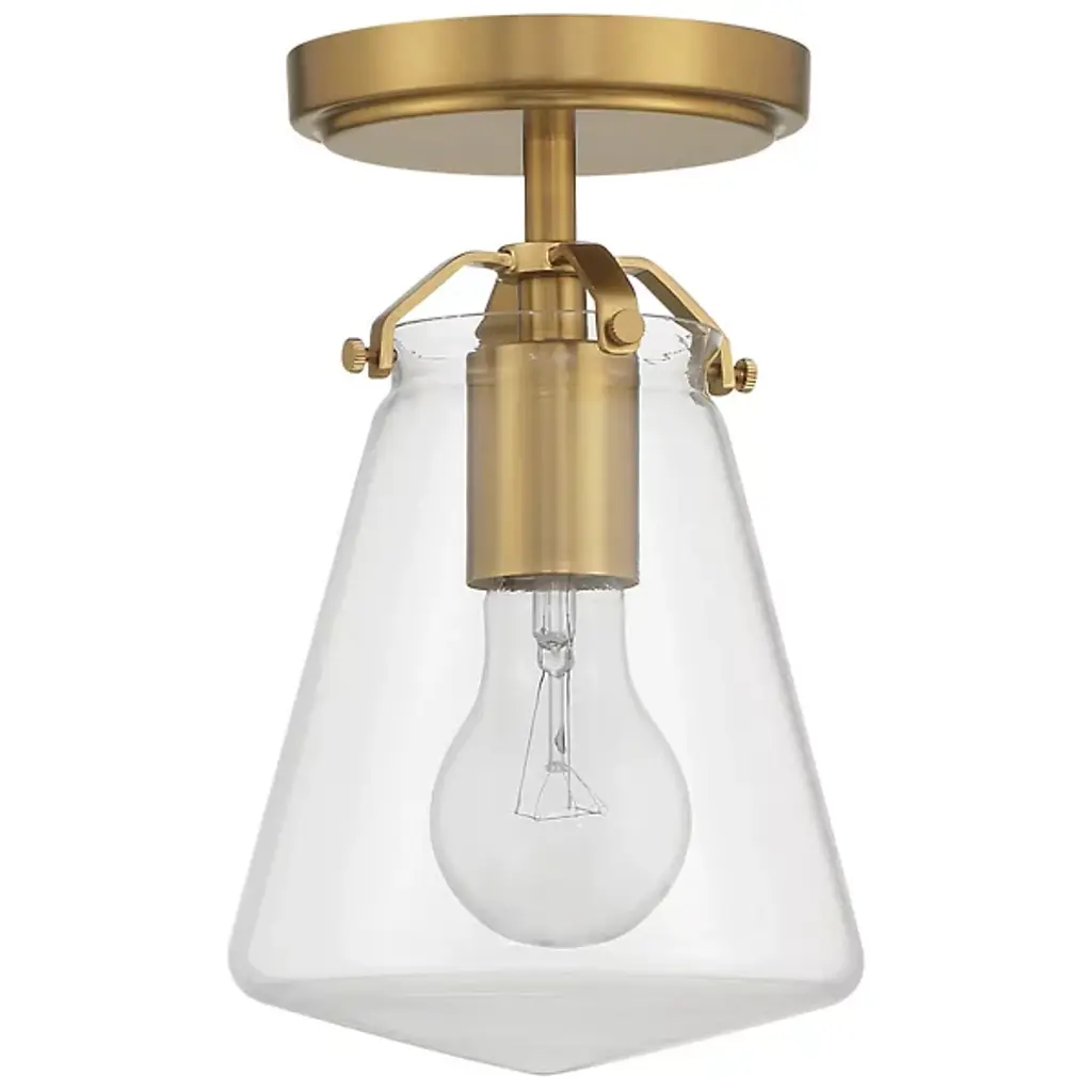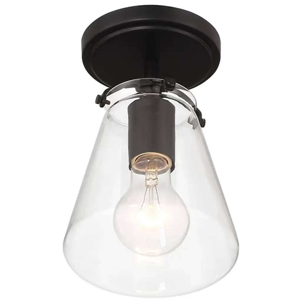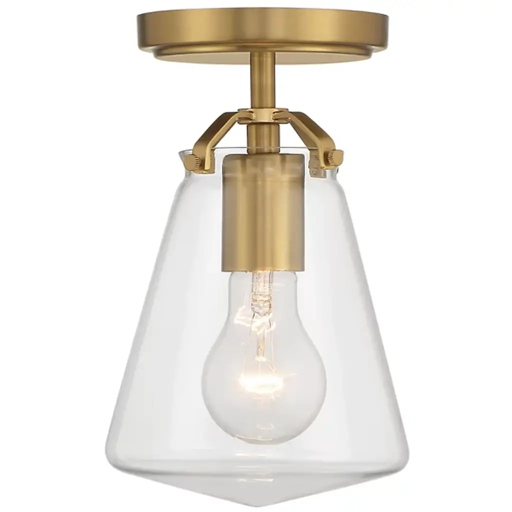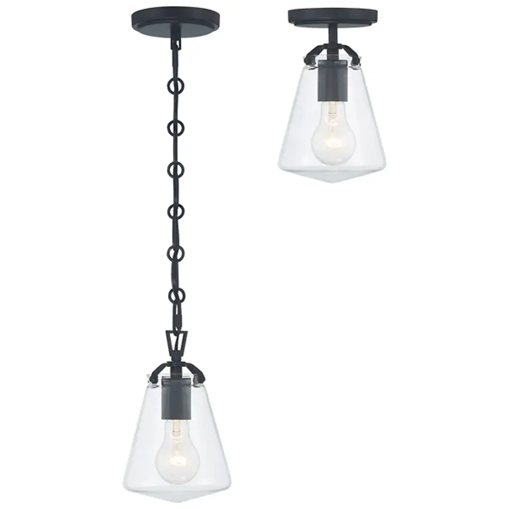 The Voss Semi Flushmount from Crystorama is crafted with meticulous attention to detail. Your semi-flushmount features a shade made of clear glass, exuding timeless elegance and refinement. The open design at the top of the shade allows for optimal illumination, creating a warm and inviting ambiance in your room. The shade is fastened to a slender arm stemming from a ceiling canopy. Voss has dimmable functionality when paired with a separately sold ELV dimmer.