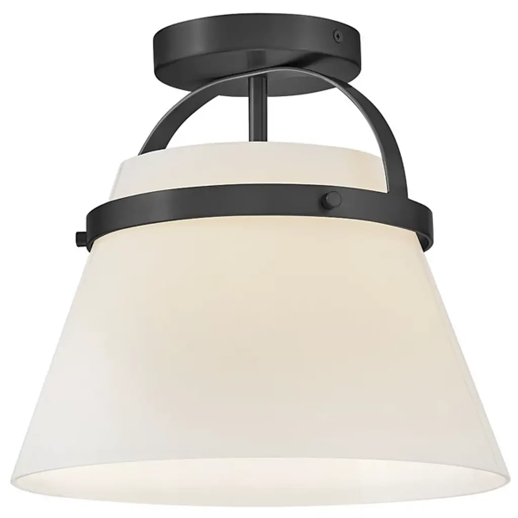 The Waldo Semi Flushmount from Alora Mood attracts the eyes from top to bottom as a compact design layered with dynamic shapes. This piece’s fusion of design inspiration translates to a versatile style. One can mount the piece in a nook, hallway, or living space through its low-profile canopy. Industrial rods shoot out to hold a sculptural shade defined by generous curves. A ring element above the shade adds a high-style note. This piece provides a tidy downlight.