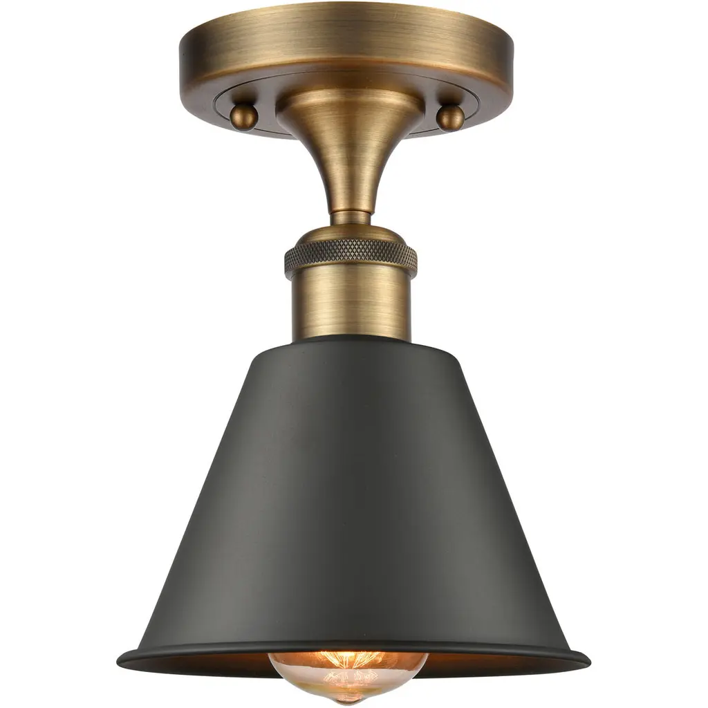 The Waldo Semi Flushmount from Alora Mood attracts the eyes from top to bottom as a compact design layered with dynamic shapes. This piece’s fusion of design inspiration translates to a versatile style. One can mount the piece in a nook, hallway, or living space through its low-profile canopy. Industrial rods shoot out to hold a sculptural shade defined by generous curves. A ring element above the shade adds a high-style note. This piece provides a tidy downlight.