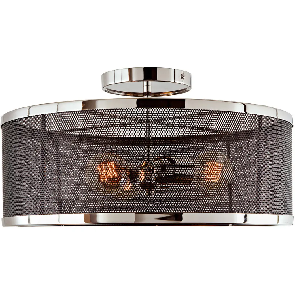 Wellington 2 Light 12 Inch Polished Nickel And Black Semi Flush Mount Ceiling Light