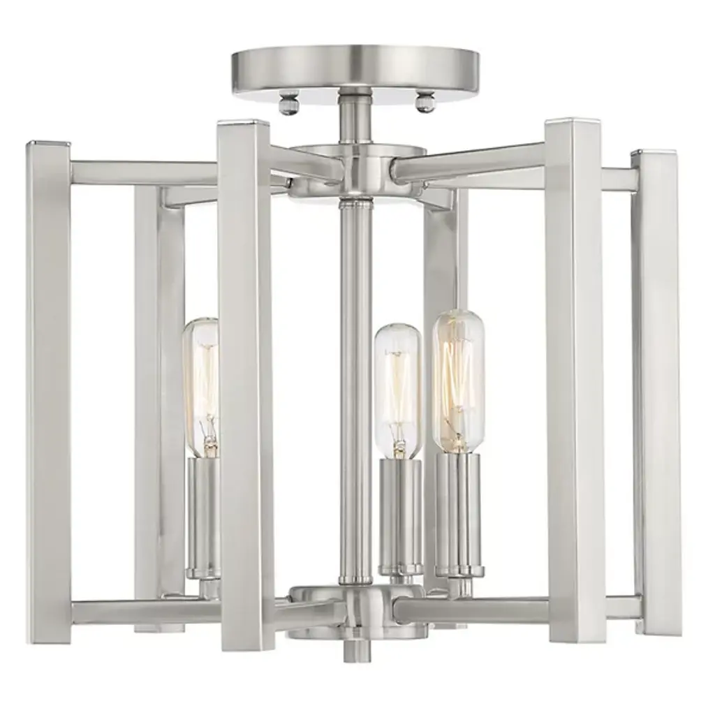 The Weston Semi-Flushmount by Alder & Ore has a clean and airy design that works effortlessly within a range of rooms and with a variety of décor styles. With a beautiful finish, a set of square bands add a defined touch to the gracefully curved arms that help create the openly styled frame of this fixture. Supported by a round canopy, the visible candelabras within this close to the ceiling design shine freely out onto its surroundings, allowing its charming composition to bring a bright and beautiful touch to spaces.