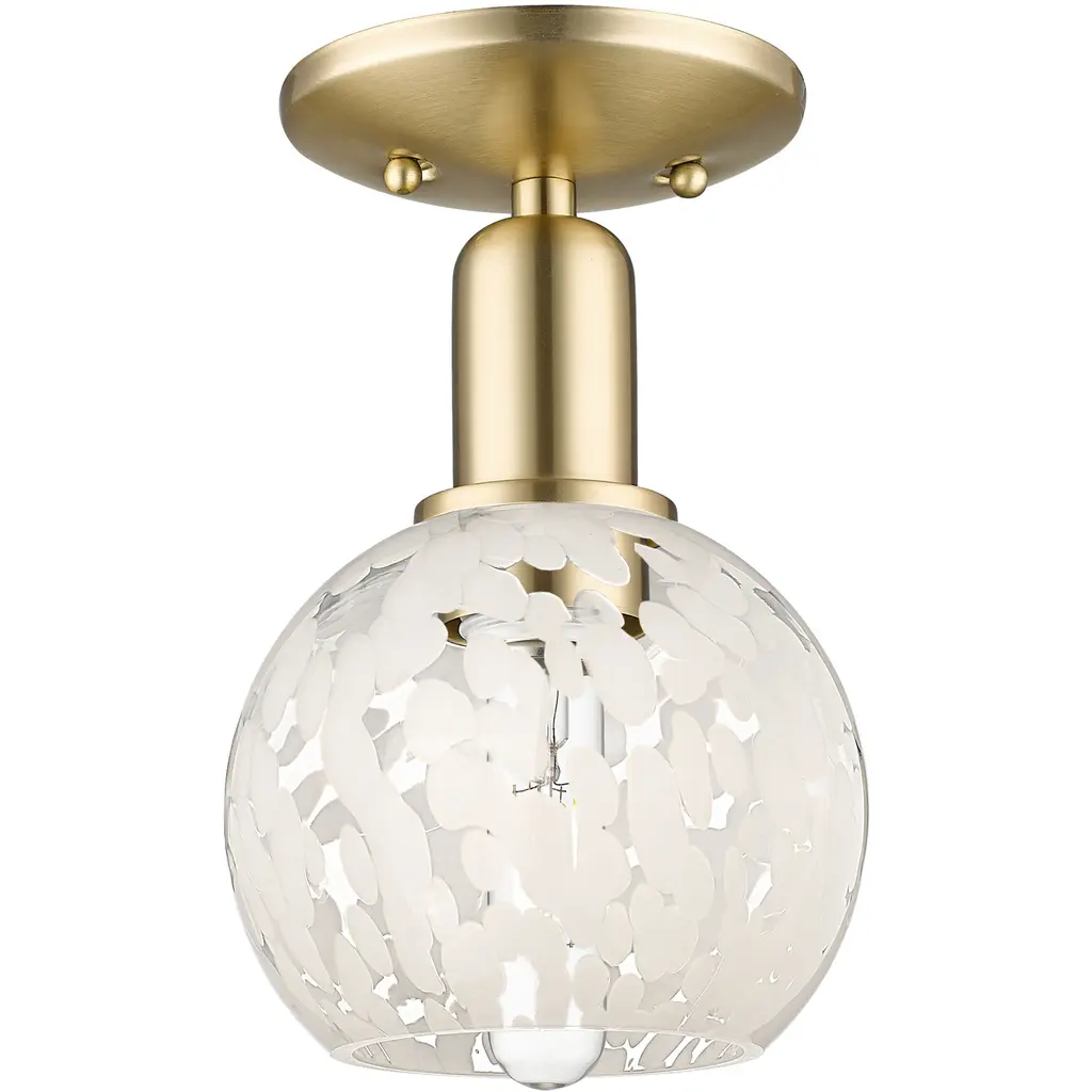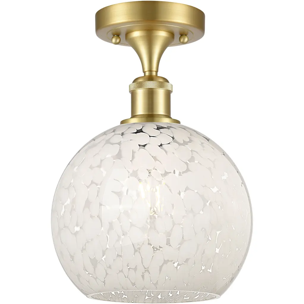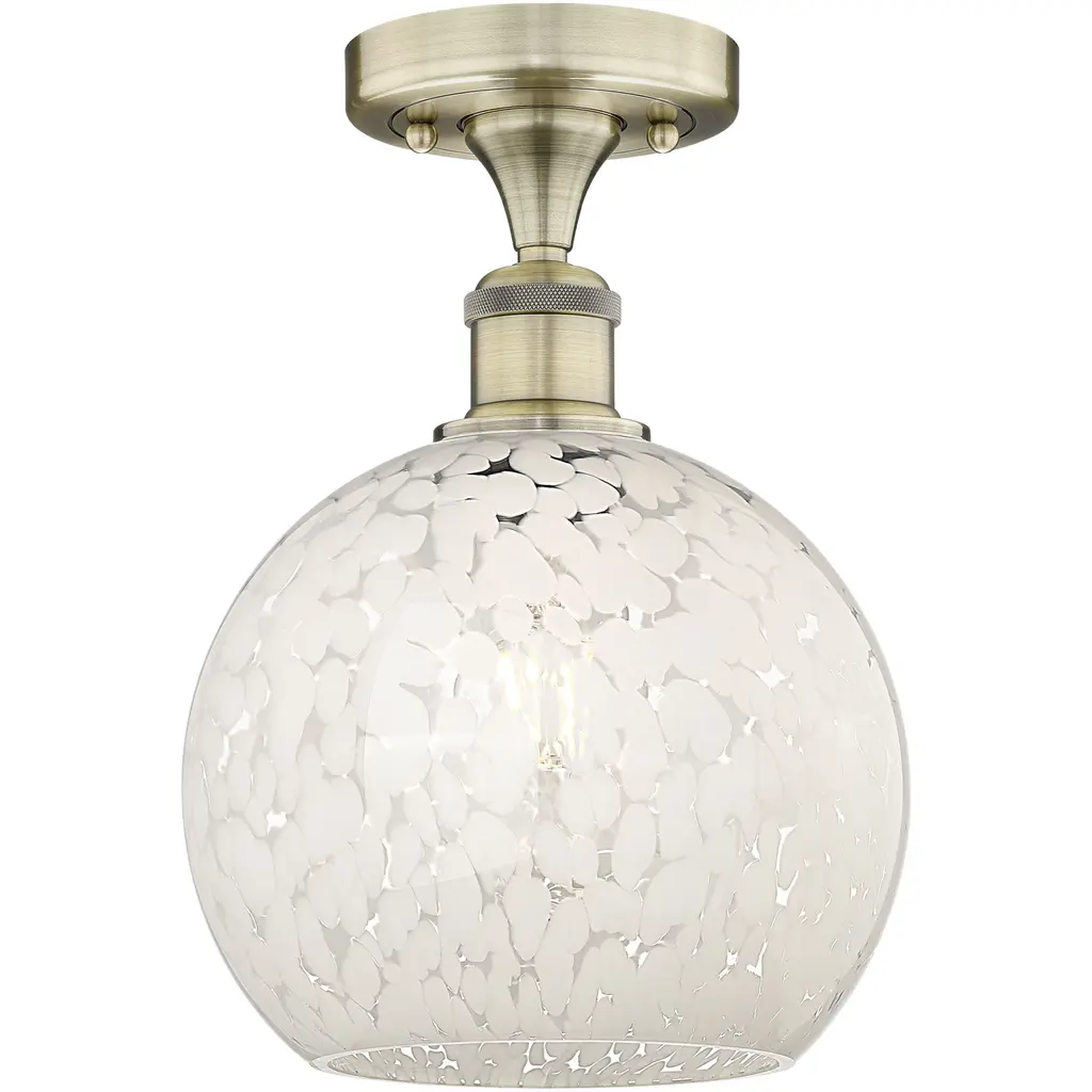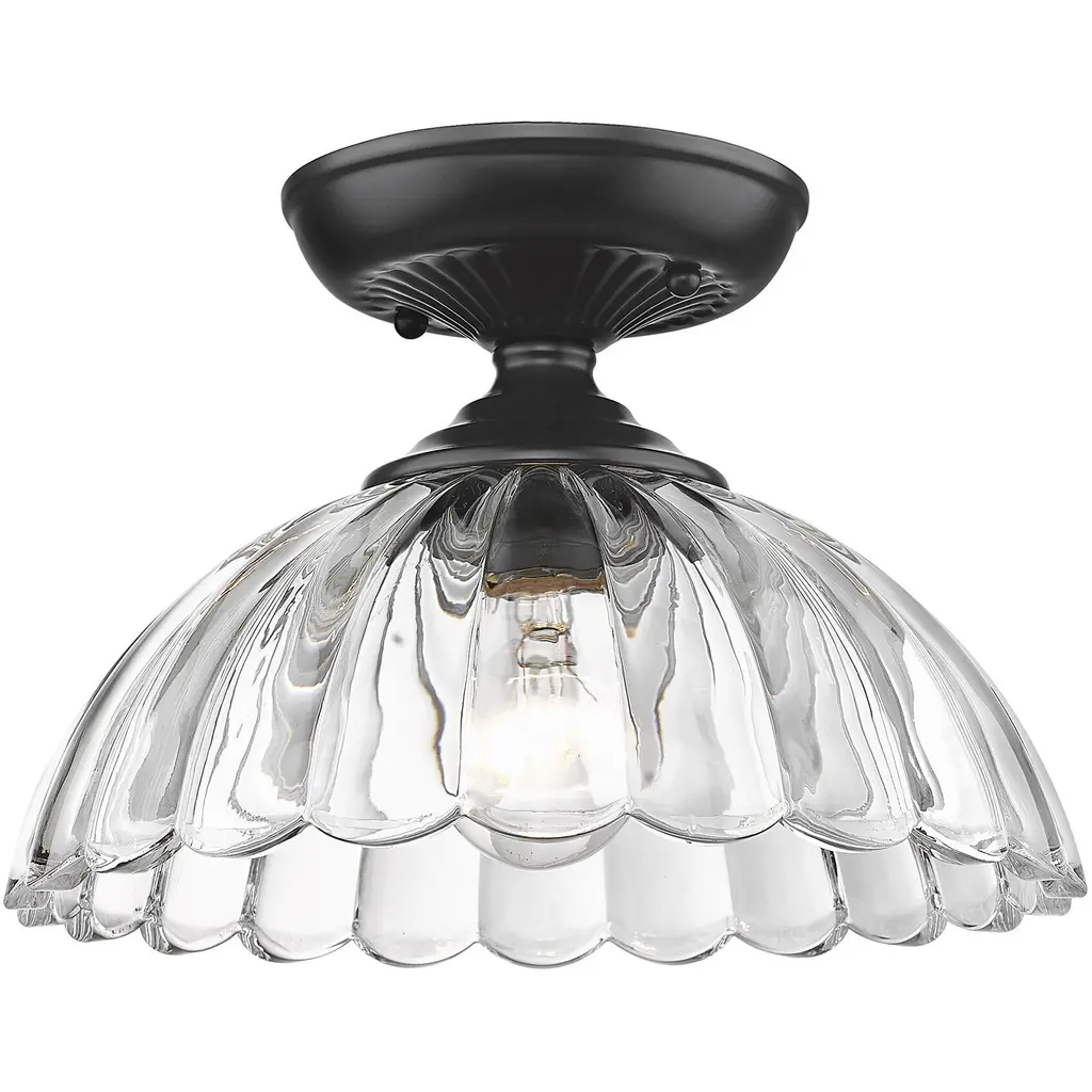 Featuring a beautifully scalloped shade, the Whitecap semi-flush is elegant and sophisticated. The amber glass flows beautifully upward towards the canopy. It is finished in a rich Mottled Cocoa.