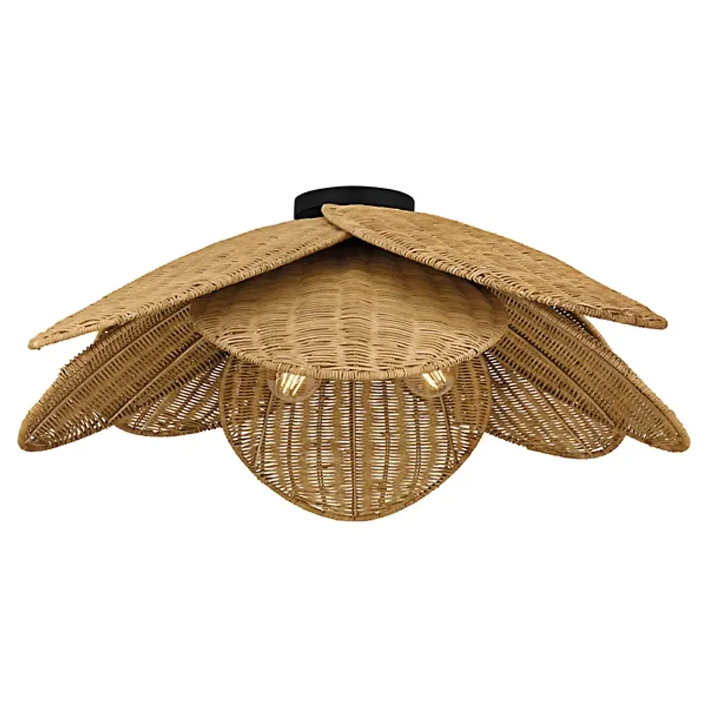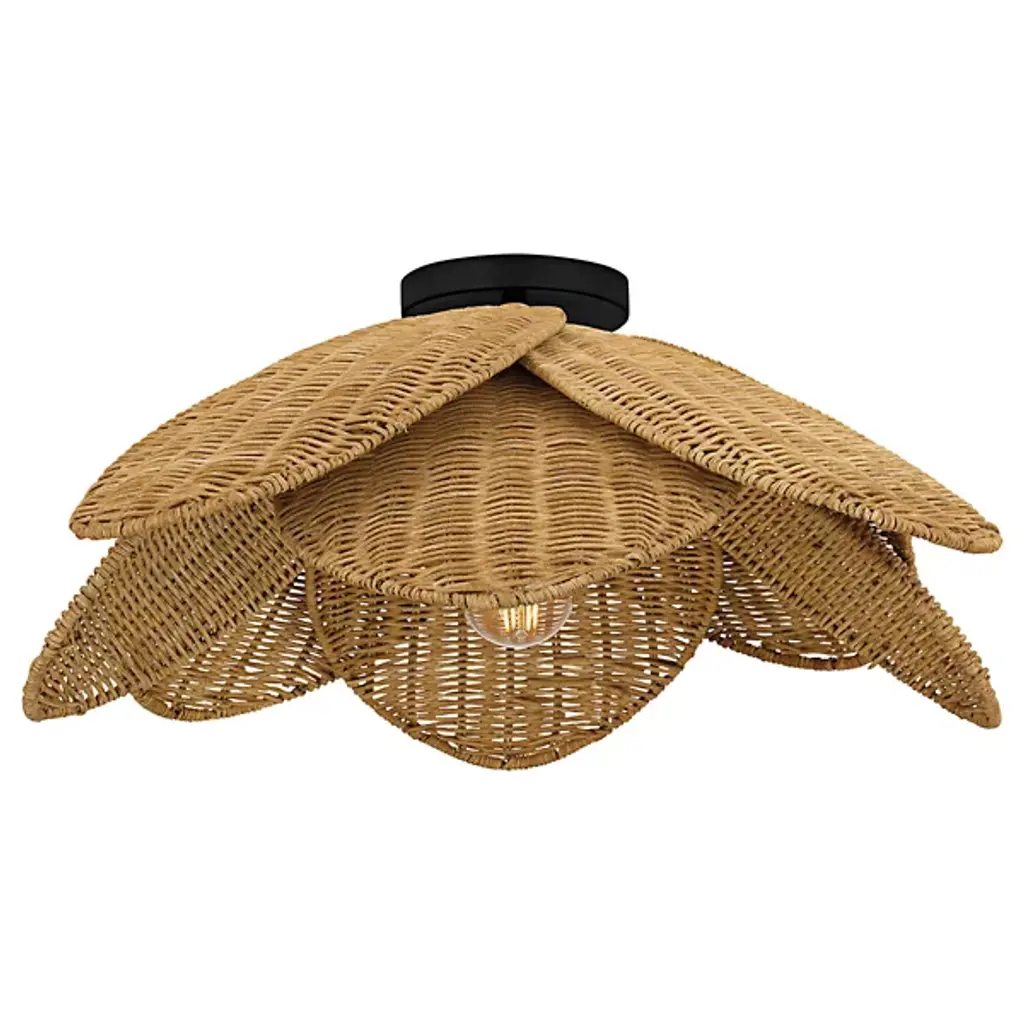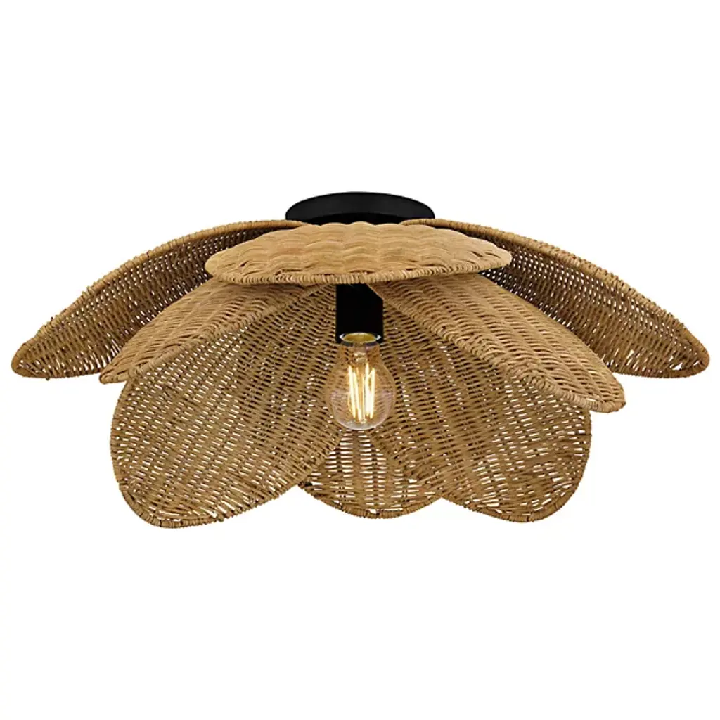 The Willa Semi-Flushmount from Quoizel brings artisanal craftsmanship right to your ceiling with its distinctive floral-patterned rattan shade. Light dances through the handwoven details, adding depth to any space. The robust steel construction ensures long-term reliability, while the adjustable mounting system works with various ceiling configurations. Dimming capabilities allow for personalized lighting control. This fixture proves particularly effective in bathrooms, closets, and compact entranceways where ceiling height may be limited, but design impact is desired.