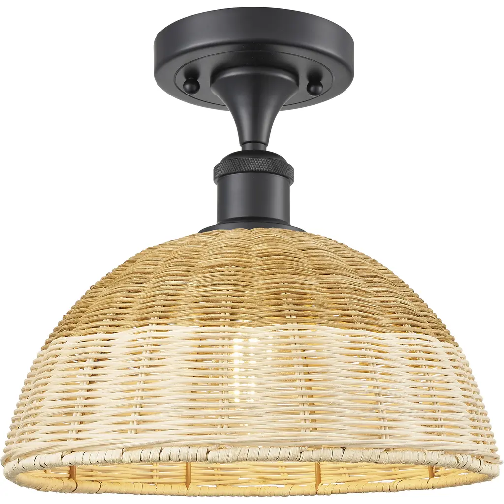 Woven Rattan 1 Light 15.75 Inch Matte Black Semi-Flush Mount Ceiling Light