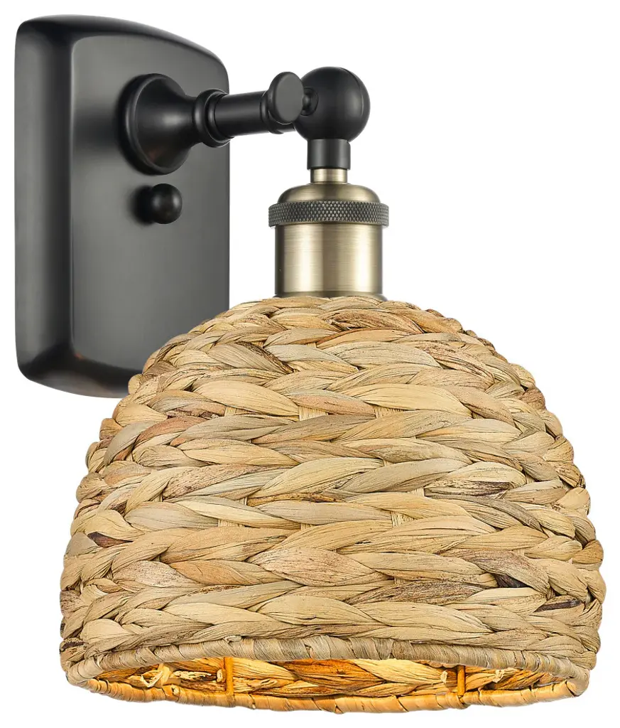 Woven Rattan 1 Light 8 Inch Antique Copper Semi-Flush Mount Ceiling Light