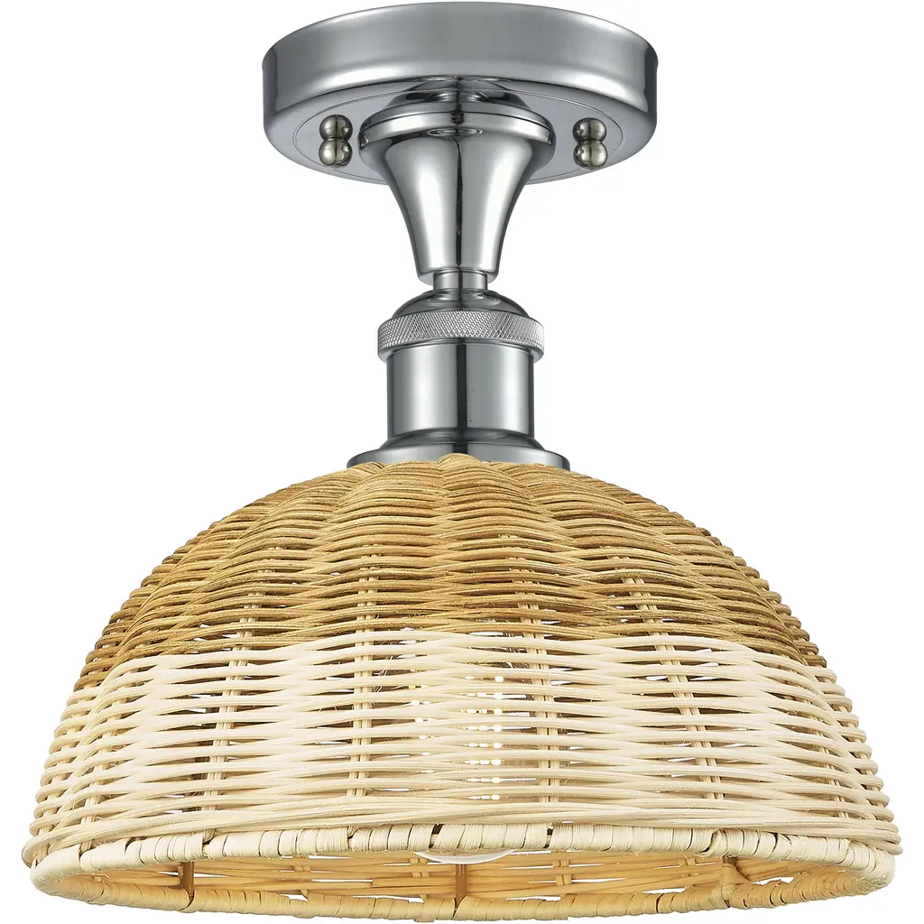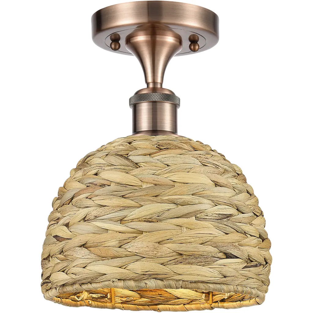 Woven Rattan 1 Light 8 Inch Satin Nickel Semi-Flush Mount Ceiling Light