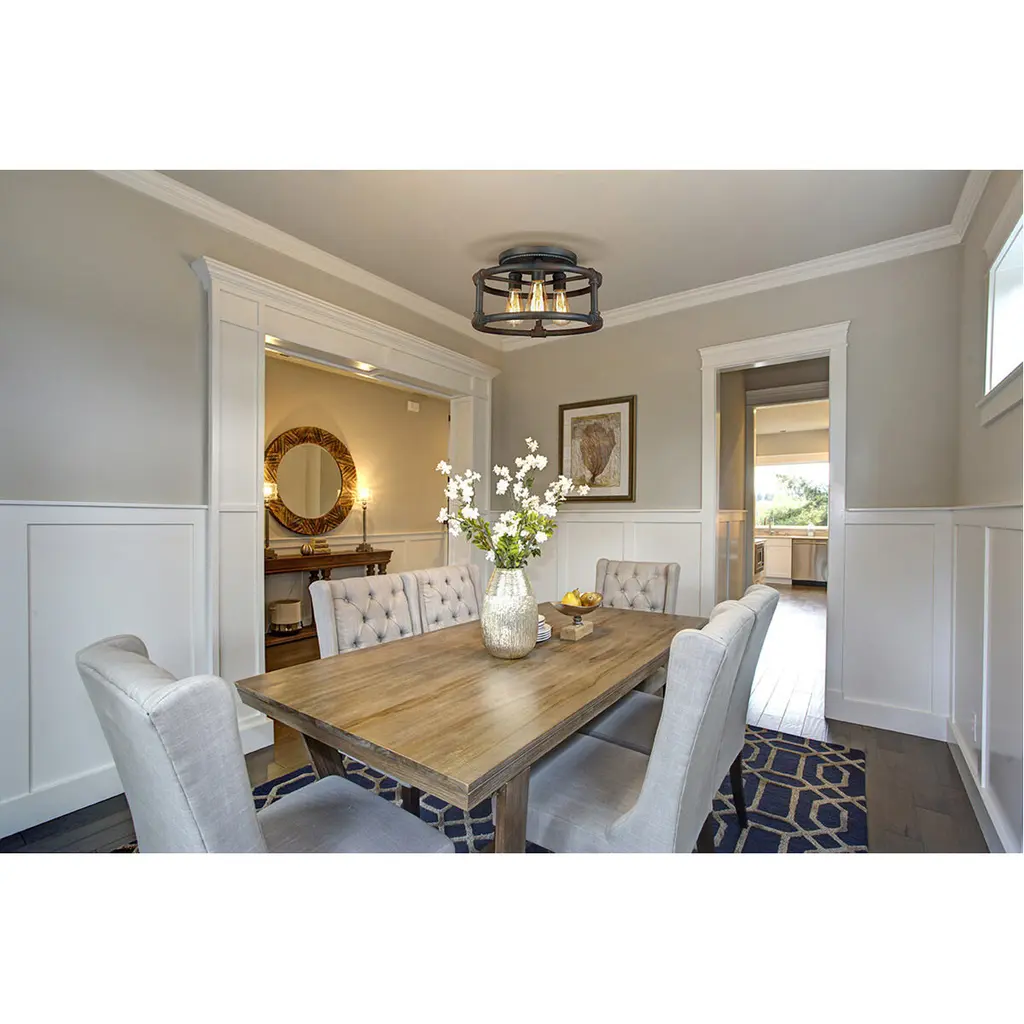 The Wymer Semi-Flush Ceiling Light by Eglo creates an industrial-inspired focal point for your living space. With its zinc finish and the use of vinatge bulbs gives this semi -flush a vintage-look that will enhances your décor in classic style.