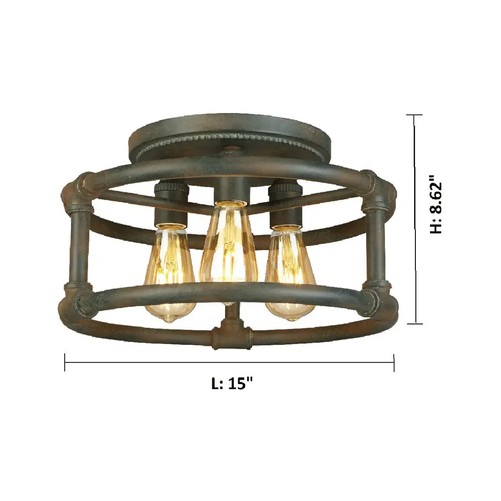 Wymer 3 Light 15 Inch Zinc Semi Flush Mount Ceiling Light