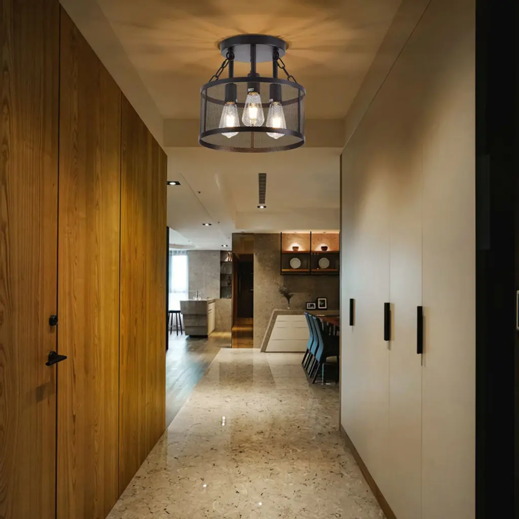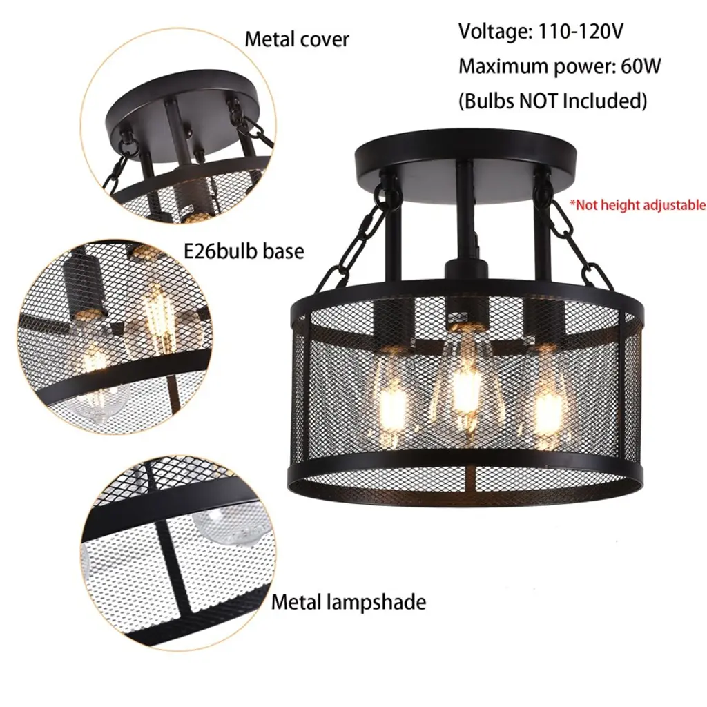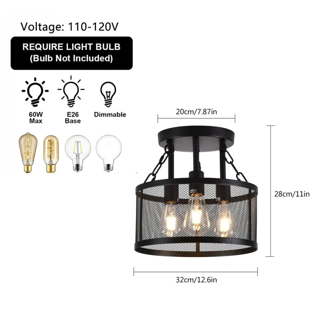 Yiyibyus Semi-flush Mount Light For Hallway Bedroom Kitchen, Ceiling Light Fixture, Black