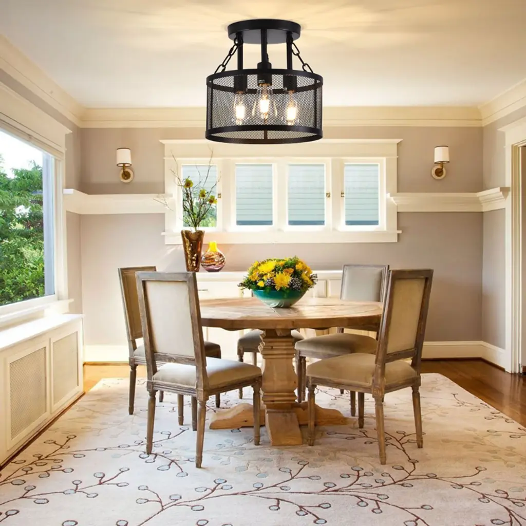 Elevate your home’s ambiance with this modern ceiling light, a perfect blend of artistic design and practical illumination. Crafted from high-class iron with a durable baked paint finish, its striking black skeletonized shade creates a captivating visual effect while allowing light to flood your space. Whether you’re looking to brighten a room or add a touch of contemporary charm, this fixture provides a cozy and inviting atmosphere, making it an ideal choice for any modern home. Specification Material: Iron Color: Black Process: Baking Paint Style: Modern Assembly Required: Yes Mounting Type: Ceiling Mount Installation Required: Yes Indoor/Outdoor Usage: Indoor Power Source: Wired Voltage: 110-120V Efficiency: E Light Source: 3* E26 Bulbs (Not Included) Max. Bulb Power: 60W Applicable Area: 5-8㎡/53.82-86.11ft² Base Diameter: 20cm/7.87in Product Size(D*H): 32*28cm/12.6*11in