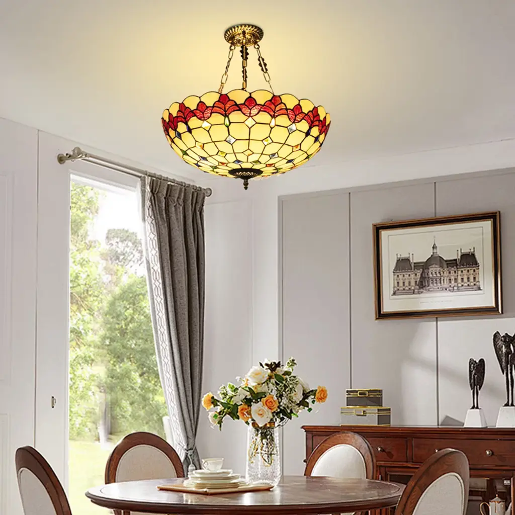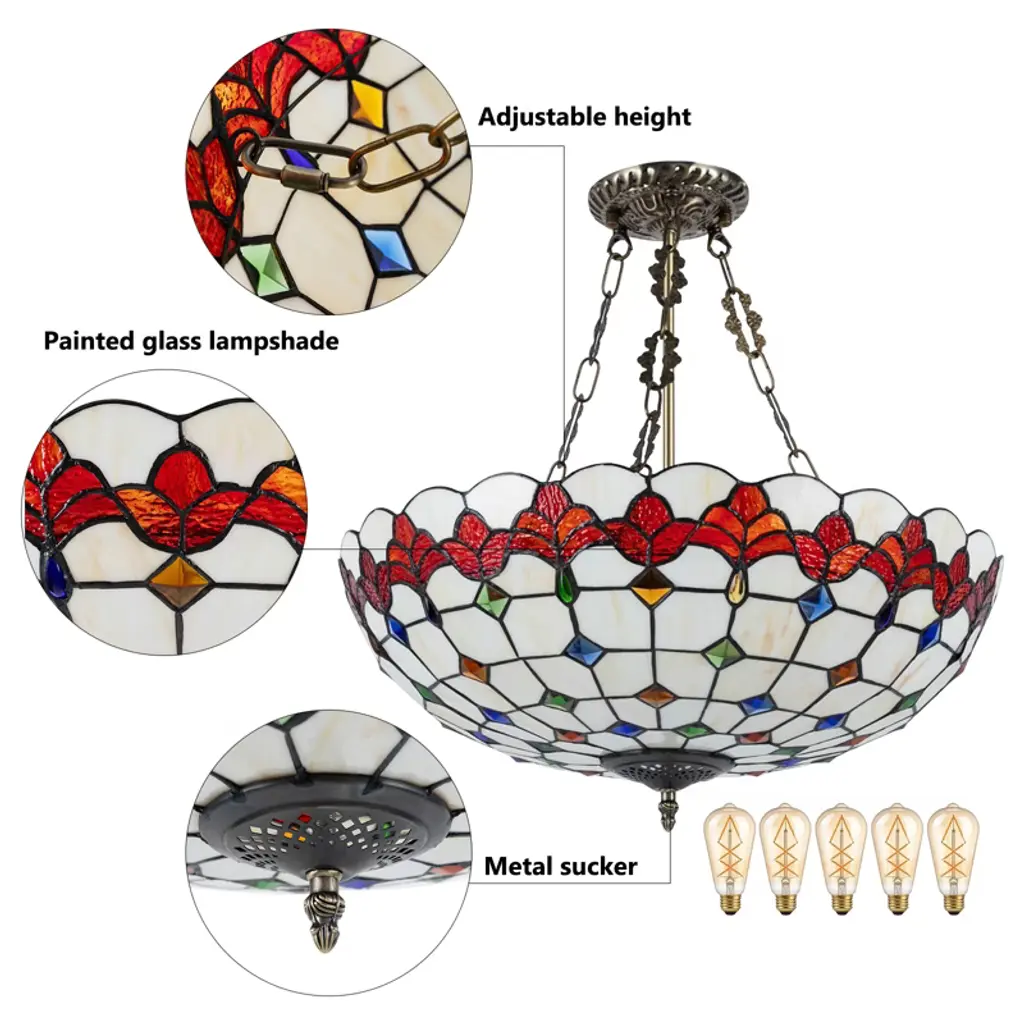 Yiyibyus Tiffany Ceiling Light Fixture With Stained Glass Shade, Semi Flush Mount Lamp