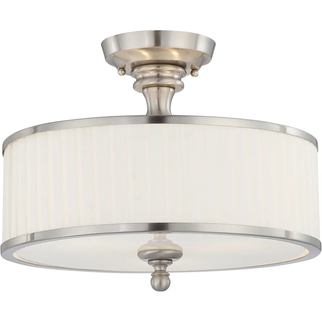 Introduce artisanal effects that stylize this three-light semi flushmount ceiling light, a modern fixture with soft, romantic flavor. This light from the Cosmopolitan collection delivers a deep etched milk white shade dressed up with heritage brass finish bands and a matching contemporary finial. Choose this light to illuminate a custom dining space, hallway, or main living area. Dimmable: Yes Shade Included: Yes