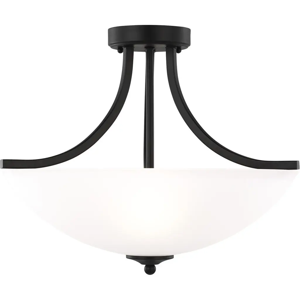 Add some elegance to your home with this two light semi-flush mount, with a matte black finish and matte opal shade. Bathroom/Bedroom/Dining Room/Dinette/Foyer/Game Room/Hallway/Kids Room/Kithcen/Kitchenette/Living Room/Office/Utility Room Shade Included: Yes Dimmable: Yes Material: Steel, Finish Color: Matte Black, Width: 15", Height: 14.75", Lamping Type: Incandescent, Number Of Bulbs: 2, Wattage: 100 Watts, Dimmable: Yes, Moisture Rating: Dry Rated