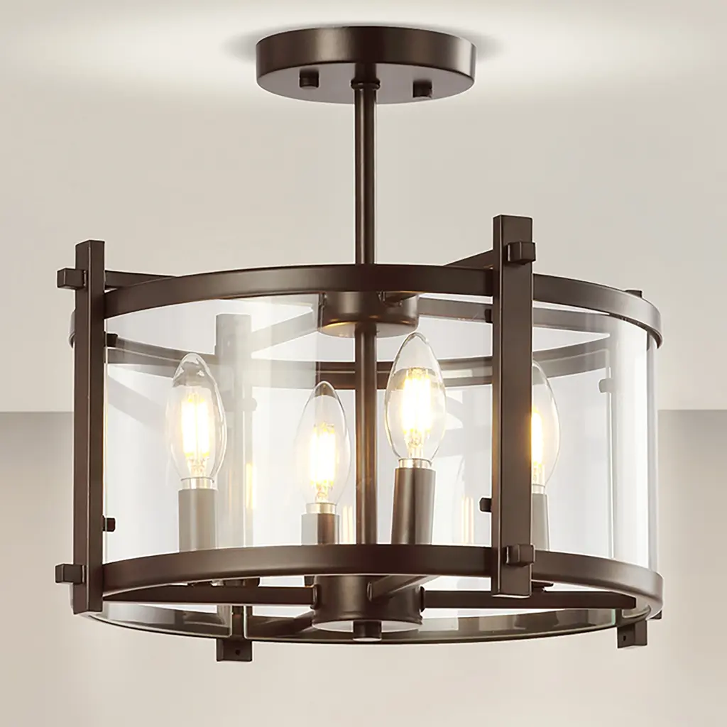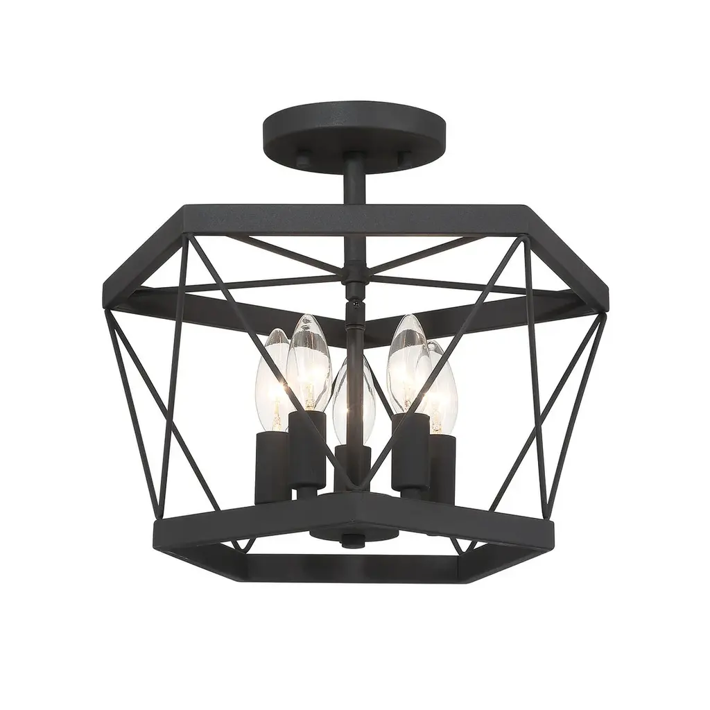 Enhance your home lighting with the stylish charm of this two-tone four-light semi-flush mount light. It features a matte black and brushed nickel finish in an alluring round design highlighted by an X-cross pattern. You will enjoy the immediate upgrade in ambiance this light brings to any hallway, bathroom, dining room, or game room. Bathroom/Bedroom/Dining Room/Dinette/Foyer/Game Room/Hallway/Kids Room/Kithcen/Kitchenette/Living Room/Office/Utility Room Shade Included: Yes Dimmable: Yes