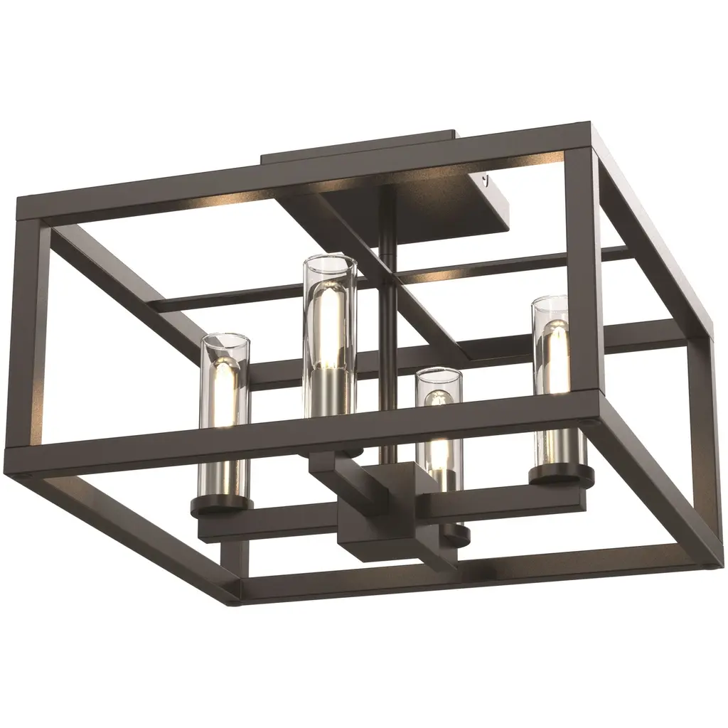 Enjoy contrasting finishes that offer a stunning effect for contemporary and transitional living spaces. Constructed from steel, the frame of this four-light semi-flush mount ceiling light blends bold black with shiny chrome and finishes its exquisite arrangement with four candelabra-style bulbs. Bathroom/Bedroom/Dining Room/Dinette/Foyer/Game Room/Hallway/Kids Room/Kithcen/Kitchenette/Living Room/Office/Utility Room Dimmable: Yes Material: Steel, Finish Color: Black/Chrome, Width: 14", Height: 14.5", Lamping Type: Incandescent, Number Of Bulbs: 4, Wattage: 60 Watts, Dimmable: Yes, Moisture Rating: Dry Rated