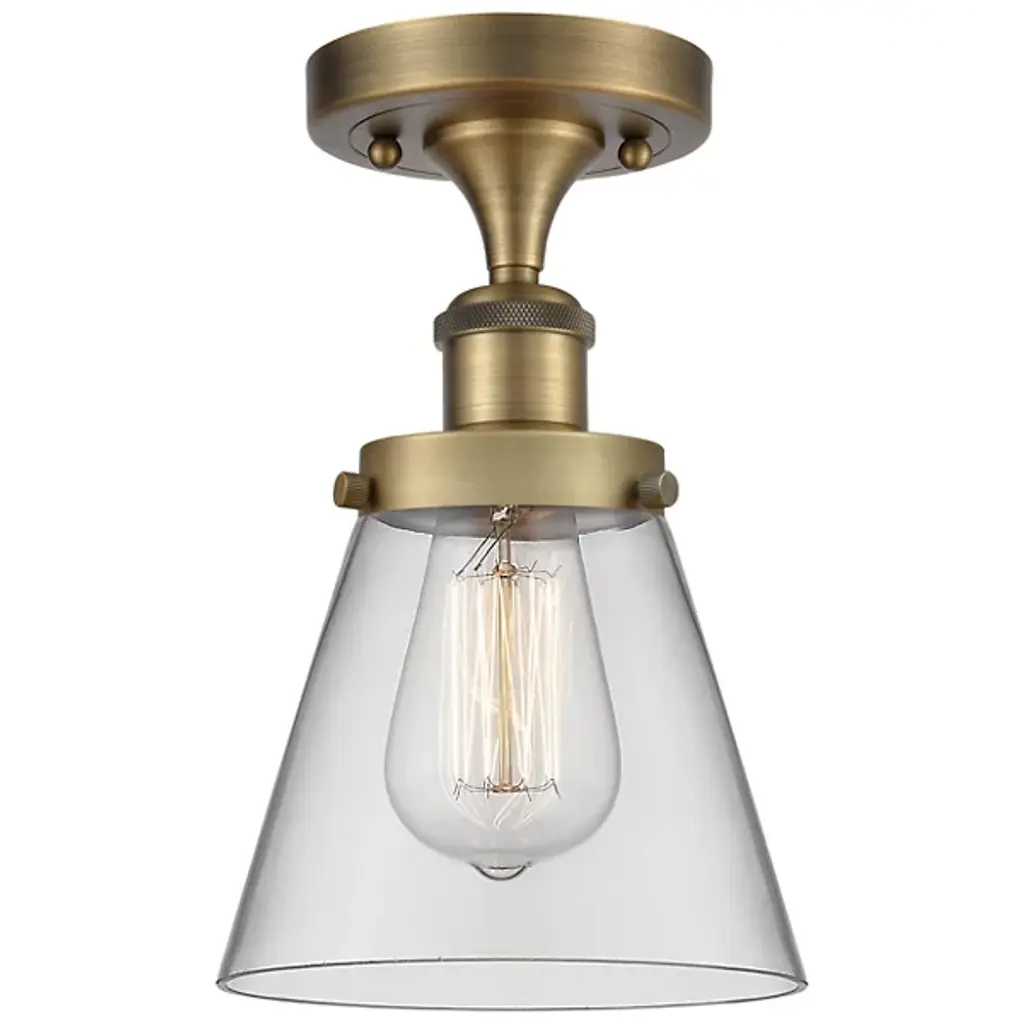 Perfect when hung in a small to mid-size space, the Zachary Glass Semi-Flushmount by Alder & Ore adds classic chic style to any room. Made with a long-lasting metal form and paired with a wide, cone-shaped glass shade, its attention to detail will impress despite its small size. This petite ceiling fixture seamlessly blends in with existing decor as a simple, polished addition to a hallway, bedroom, closet or other compact space within the home.