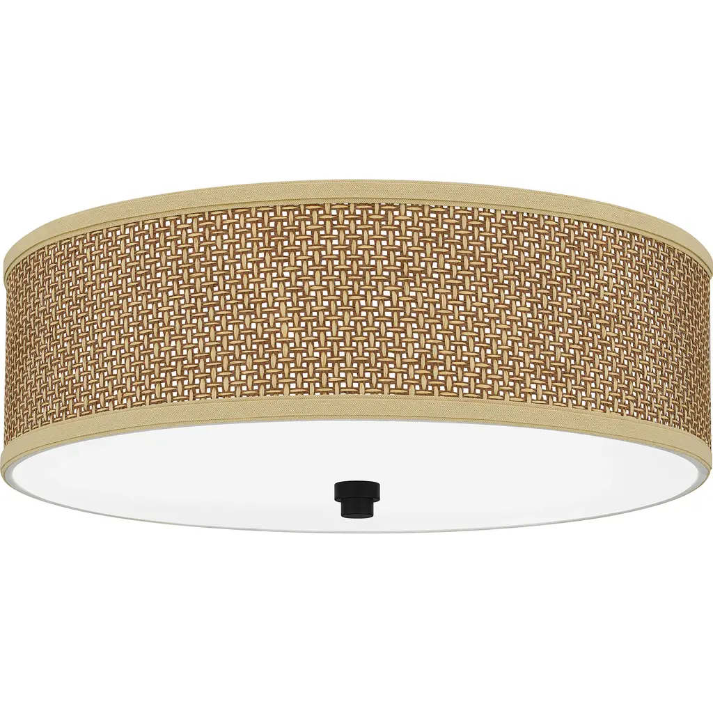 Brings a serene, slightly exotic feel--a great addition to so many decors, from classic to contemporary. The Quoizel Zen Semi-Flushmount features a 17" wide rattan shade with Mystic Black accents. Will work nicely in a bedroom, powder room, living room or kitchen, among other spaces. Also pairs well with the rest of the Quoizel Zen lighting collection.