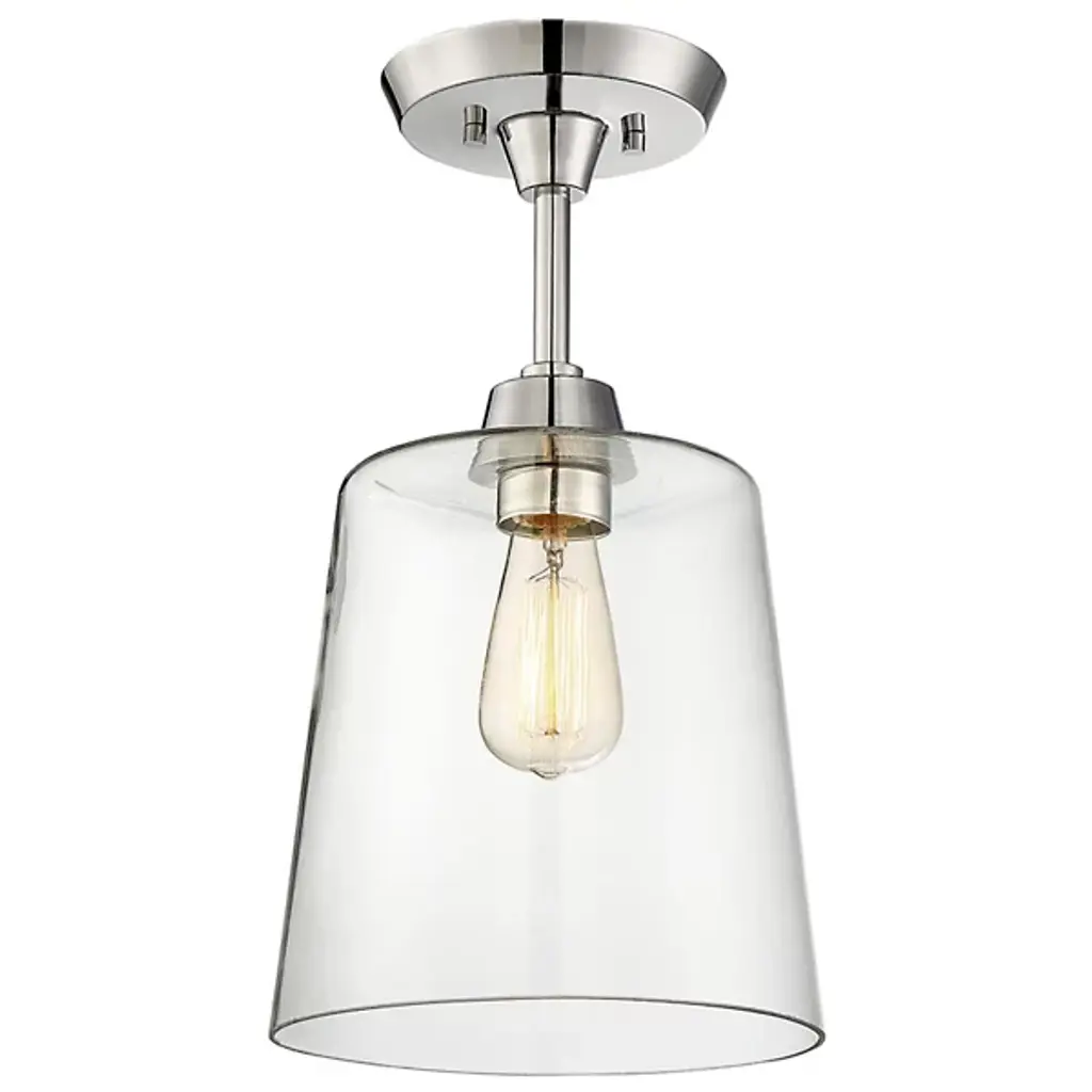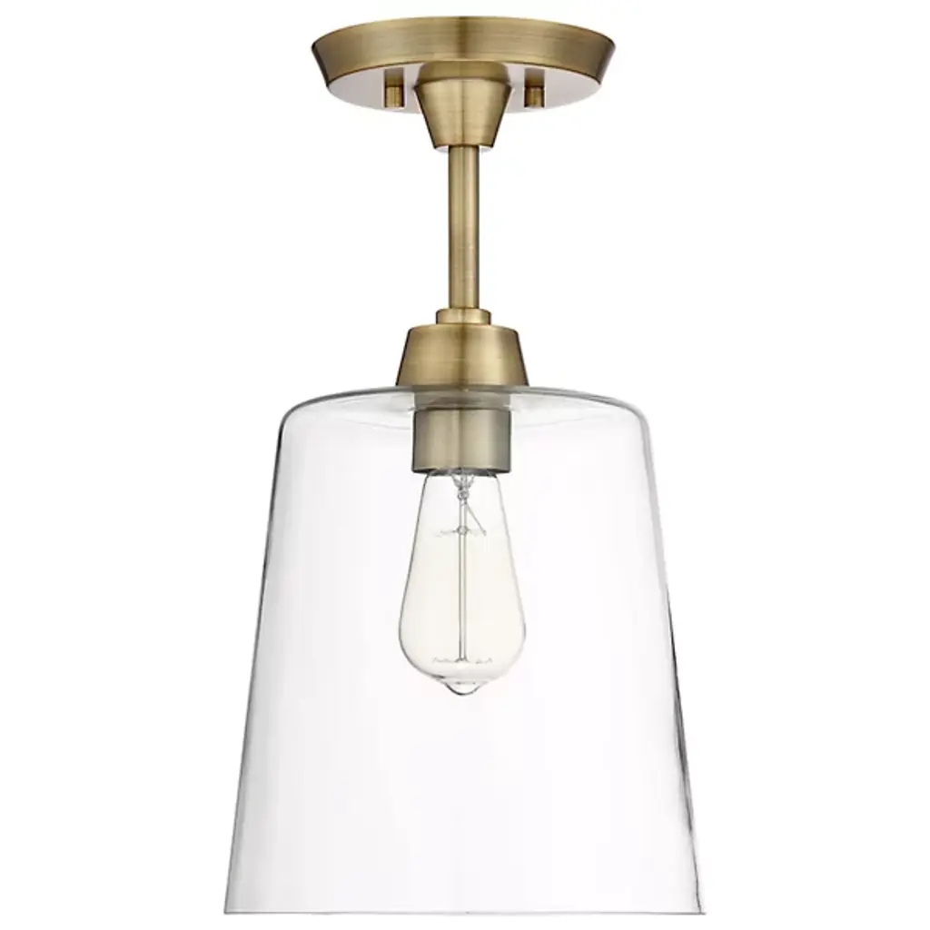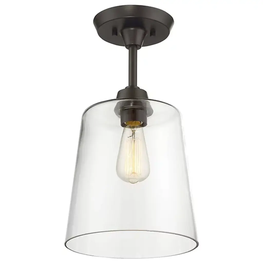Seeing style with clarity. The Zoe Semi-Flushmount by Alder & Ore makes a perfect home for a vintage-inspired filament bulb, combining antique detail with a clean and simple enclosure. Featuring a straightforward glass canopy and handsome subtle hardware, this fixture has transitional versatility ensuring an easy fit into any room's décor.