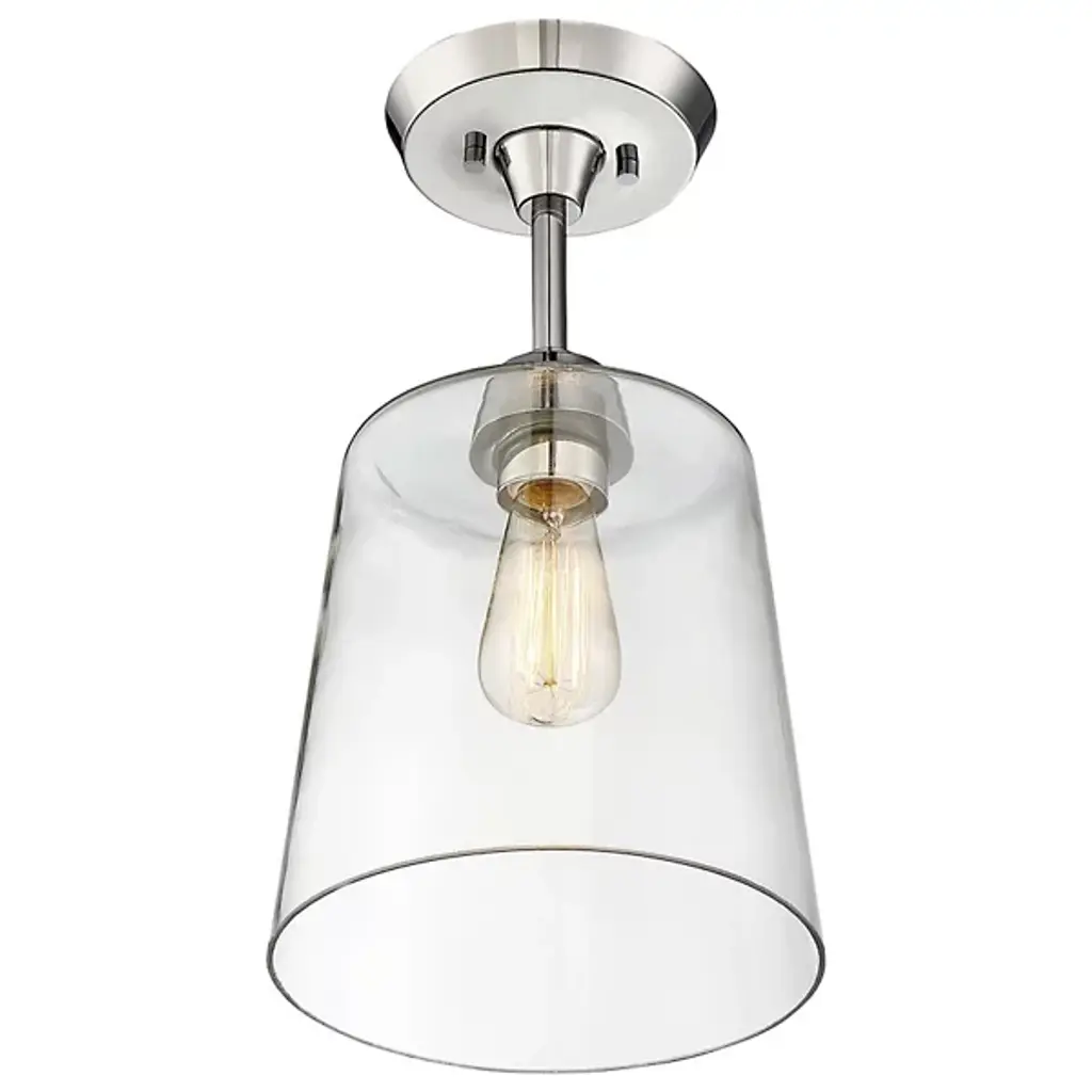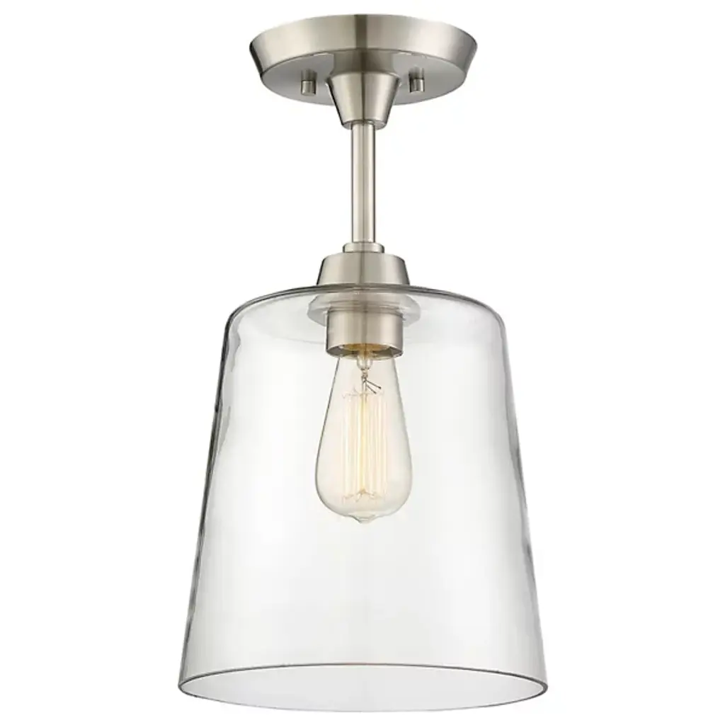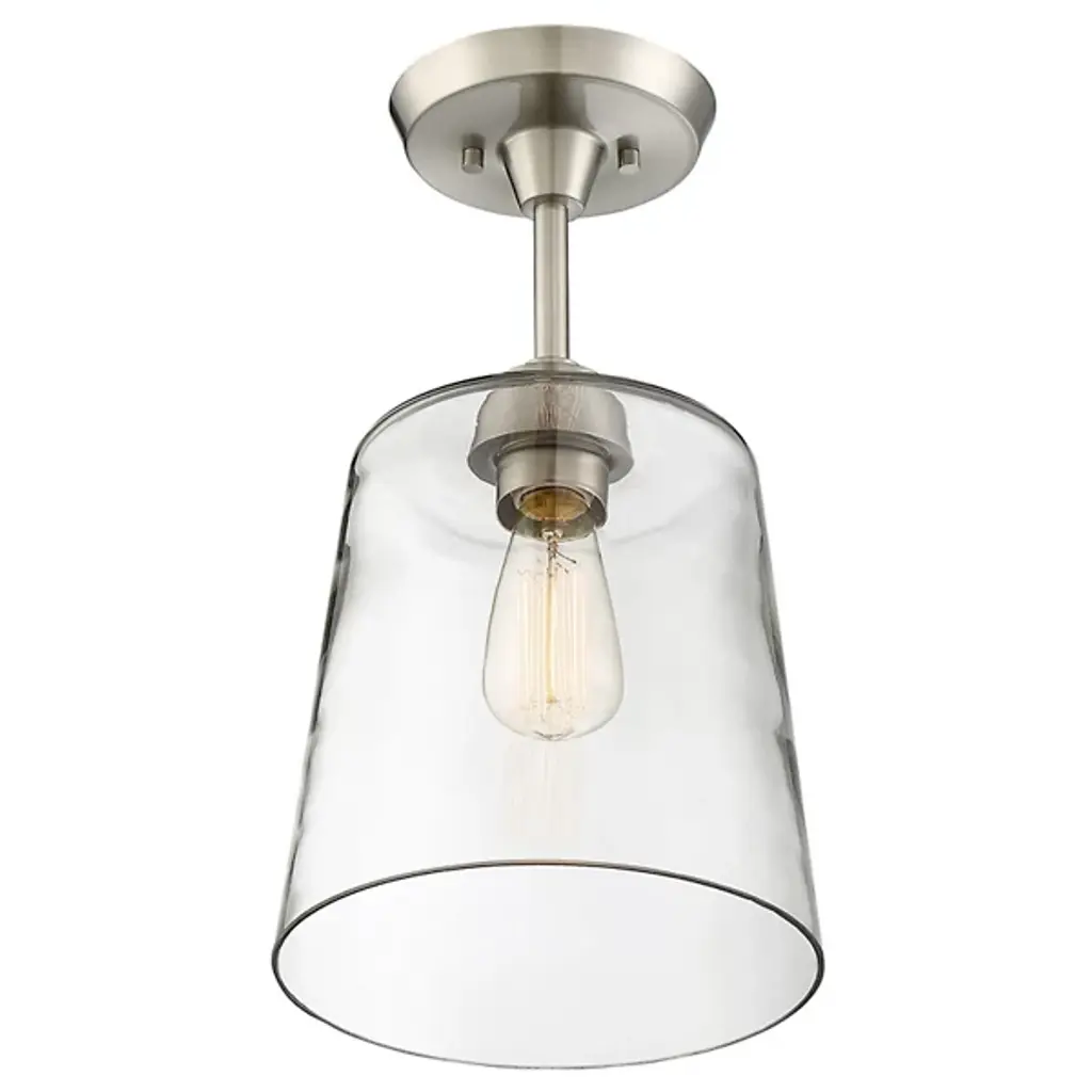 Seeing style with clarity. The Zoe Semi-Flushmount by Alder & Ore makes a perfect home for a vintage-inspired filament bulb, combining antique detail with a clean and simple enclosure. Featuring a straightforward glass canopy and handsome subtle hardware, this fixture has transitional versatility ensuring an easy fit into any room's décor.
