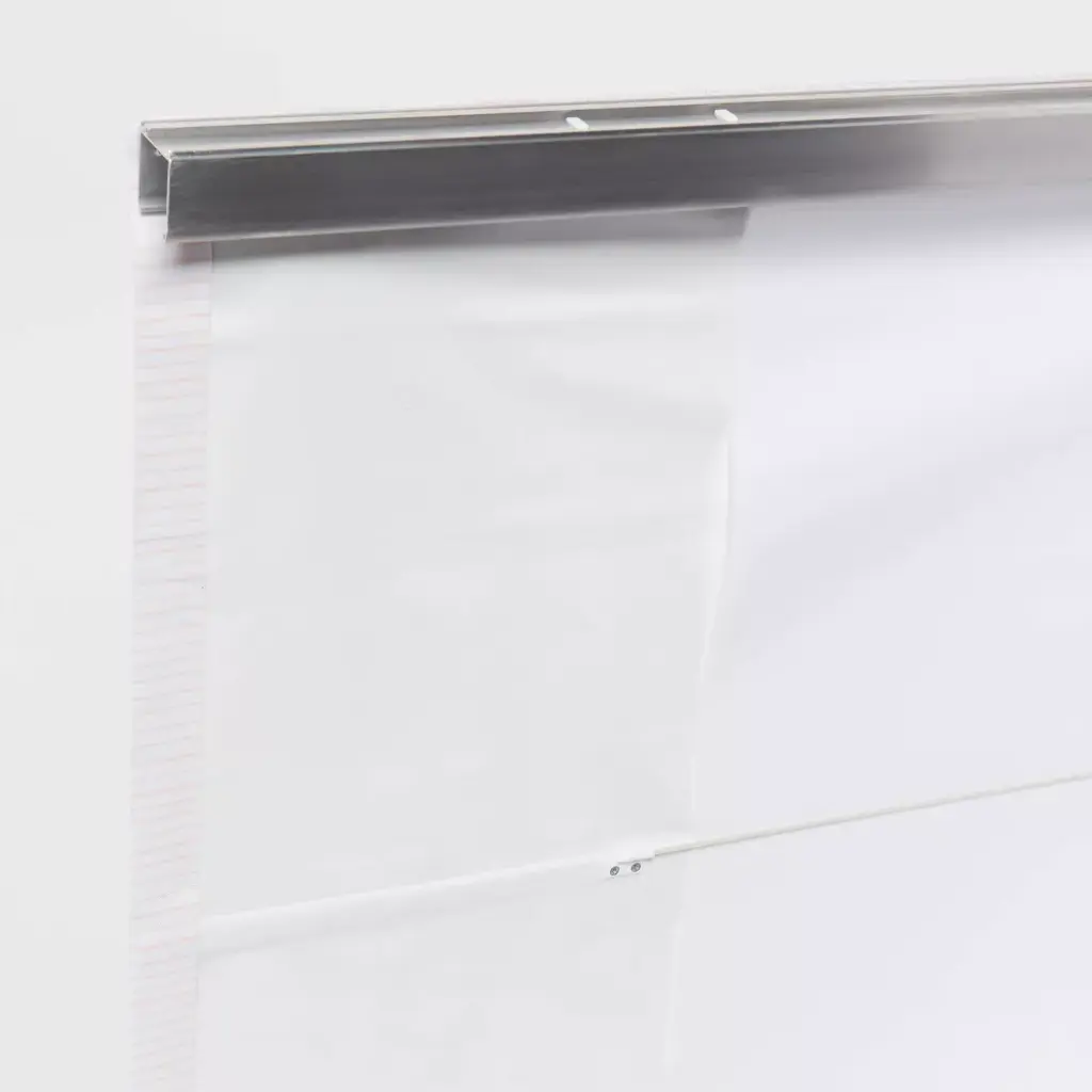 Elevate the style and function of your kid's bedroom with the 48-Inch x 64-Inch Blackout Roman Shade from Pillowfort™. Boasting a chic white-and-pink design with pink vertical side ribbons, this blackout shade completely blocks out the light in your little one’s room so they get the best night’s sleep possible. The shade’s cordless retraction lets you easily open and close it throughout the day, and it pleats beautifully for elegant charm. Plus, the white hue and simple pink stripes blend seamlessly with their existing room decor to create a stylish nighttime sanctuary.