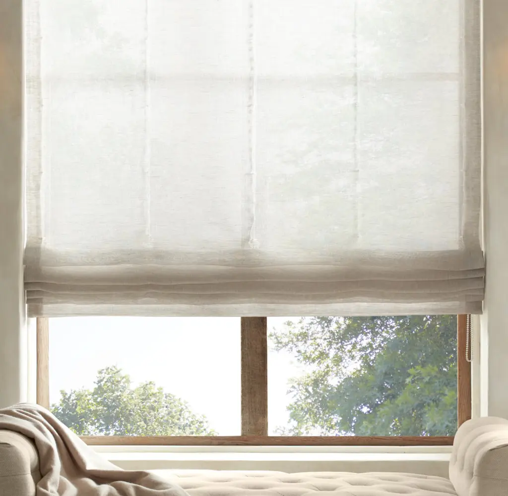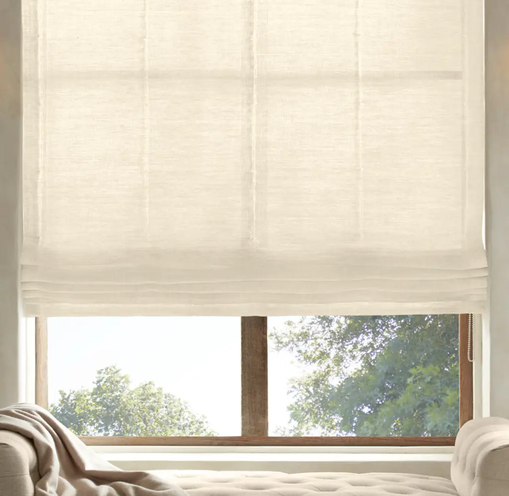 Professional Design & Measure Services.* Free Installation for a Limited Time.* *Appointment availability and lead times vary by region. In-stock window treatments ship free in 2 weeks. Select Colors on Sale: Mocha, Charcoal, Spruce and Indigo For help with ordering, or to schedule a measure or installation, please contact us via email at customwindows@rh.com or by calling 888.669.2809. Highly functional and aesthetically clean, our custom Flat Roman Shades ensure that the windows themselves are part of the view. Sewn with a smooth front, they come in a variety of natural materials and fabric options that are also available in our drapery collections – allowing you to combine coverings in the same room, or even on the same window, with perfect ease. May also be layered over our Solar or Blackout Roller Shades.