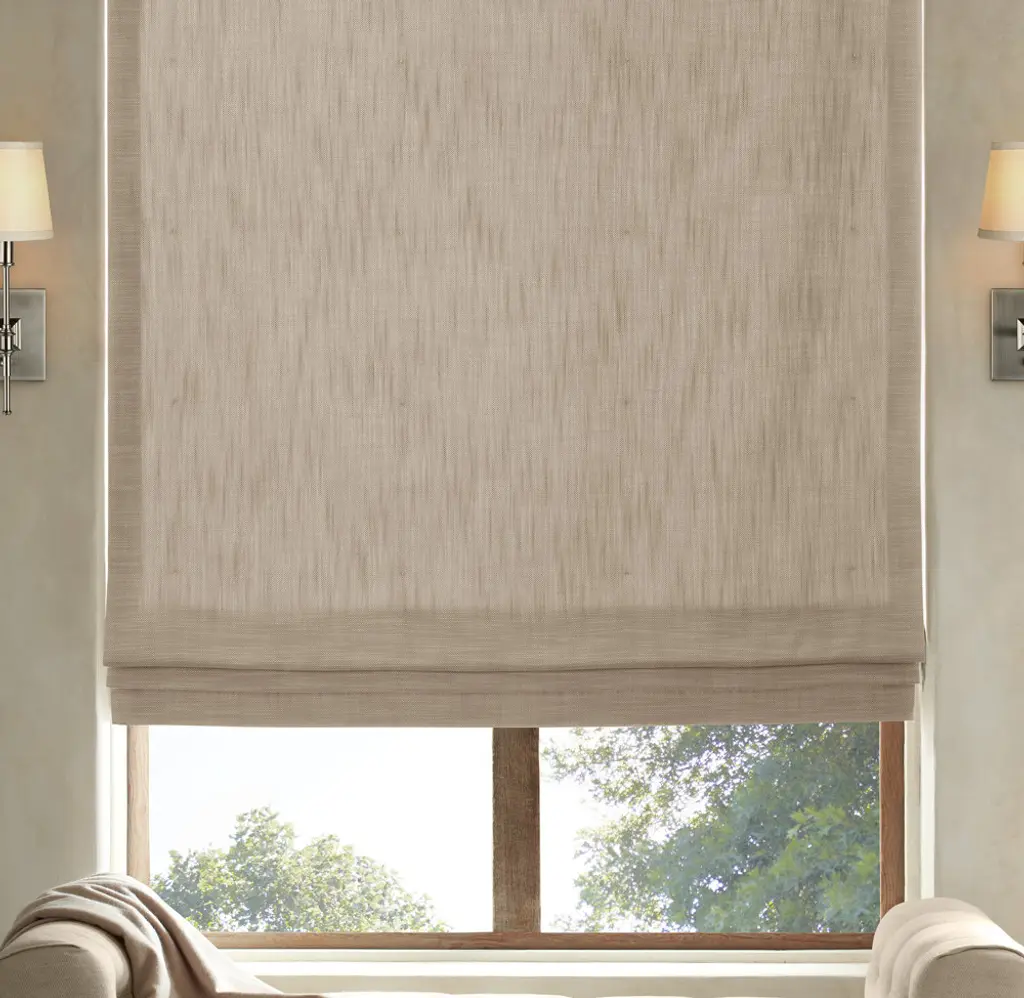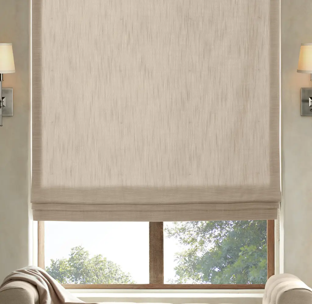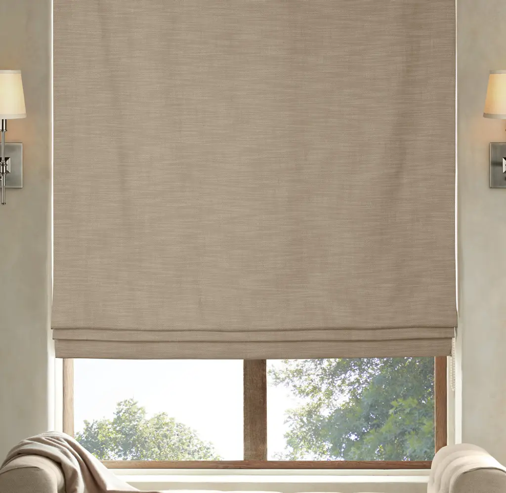 Professional Design & Measure Services.* Free Installation for a Limited Time.* *Appointment availability and lead times vary by region. In-stock window treatments ship free in 2 weeks. Select Colors on Sale: Mocha, Café, Spruce, Mink, Sky, Navy, Pool, Vert, Soleil, Clementine, Poppy, Black and Carbon For help with ordering, or to schedule a measure or installation, please contact us via email at customwindows@rh.com or by calling 888.669.2809. Highly functional and aesthetically clean, our custom Flat Roman Shades ensure that the windows themselves are part of the view. Sewn with a smooth front, they come in a variety of natural materials and fabric options that are also available in our drapery collections – allowing you to combine coverings in the same room, or even on the same window, with perfect ease. May also be layered over our Solar or Blackout Roller Shades.