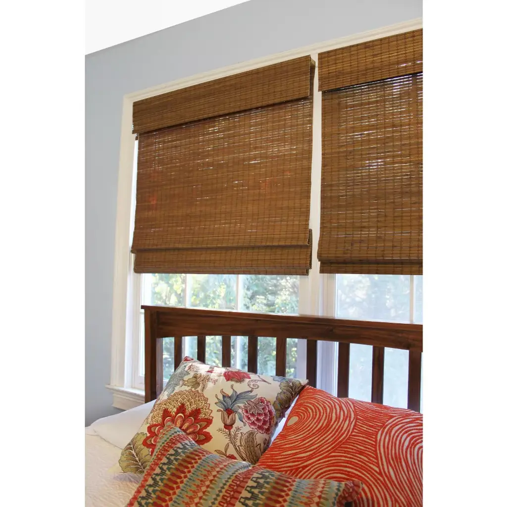 Relax the look of any room with the casual and comforting cordless maple cape cod Flatweave Bamboo Wood roman shade. Environmentally friendly, semi-private textured natural shades (also called natural shades, Bamboo shades, or woven woods) stylishly filter light and protect your furniture from fading. The rich wood tones of Bamboo blinds are complimentary to jute and sisal rugs as well as many hardwood floors and furniture finishes. Bamboo blinds are textured window blinds that are available in many different colors and styles. They are popular window treatments for coastal and beach properties, lakeside or country cottages, and traditional or metropolitan homes. For additional privacy or neutral backing, you can attach a fabric privacy liner to the back side of natural shades. Another option for additional privacy is to outside mount natural shades, then inside mount an inexpensive white black out roller blind. cordless bamboo shade, safe for kids, cordless shade, cordless, window blind, cordless blind, bamboo blind, roman shade, roman blind, bamboo roman shade, woven wood shade, woven wood, textured shades, natural shades, natural shade, best for kids shade. Window shade, hardware, instructions, valance.