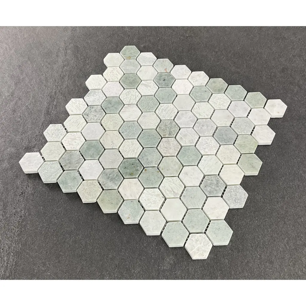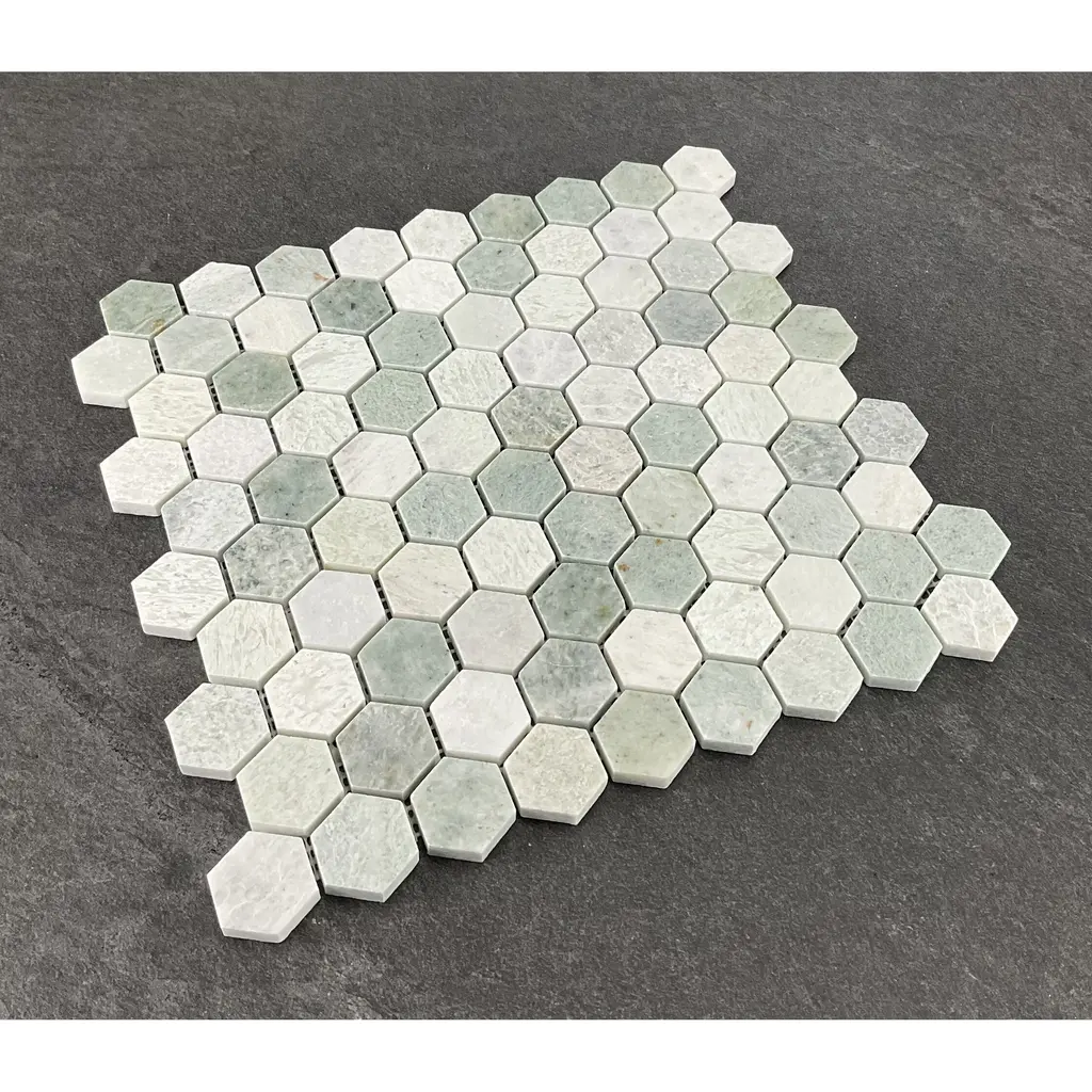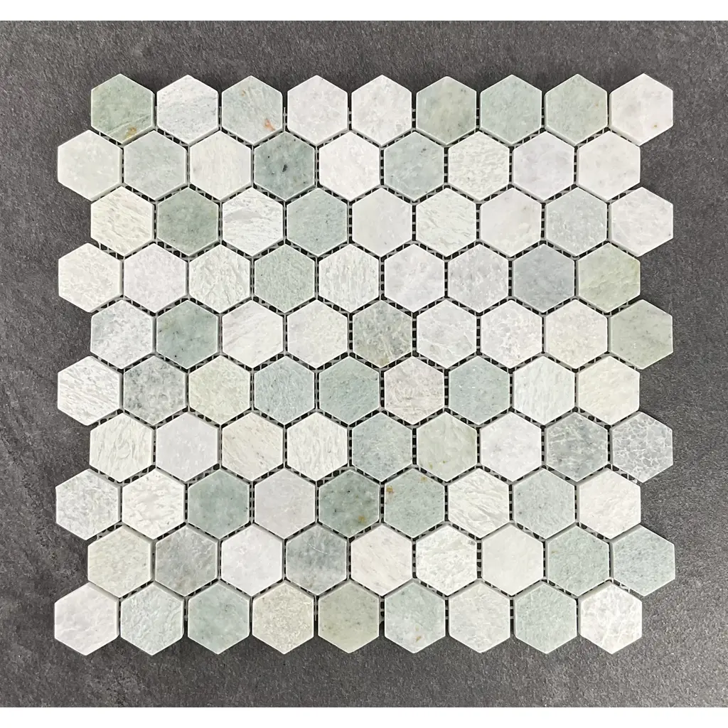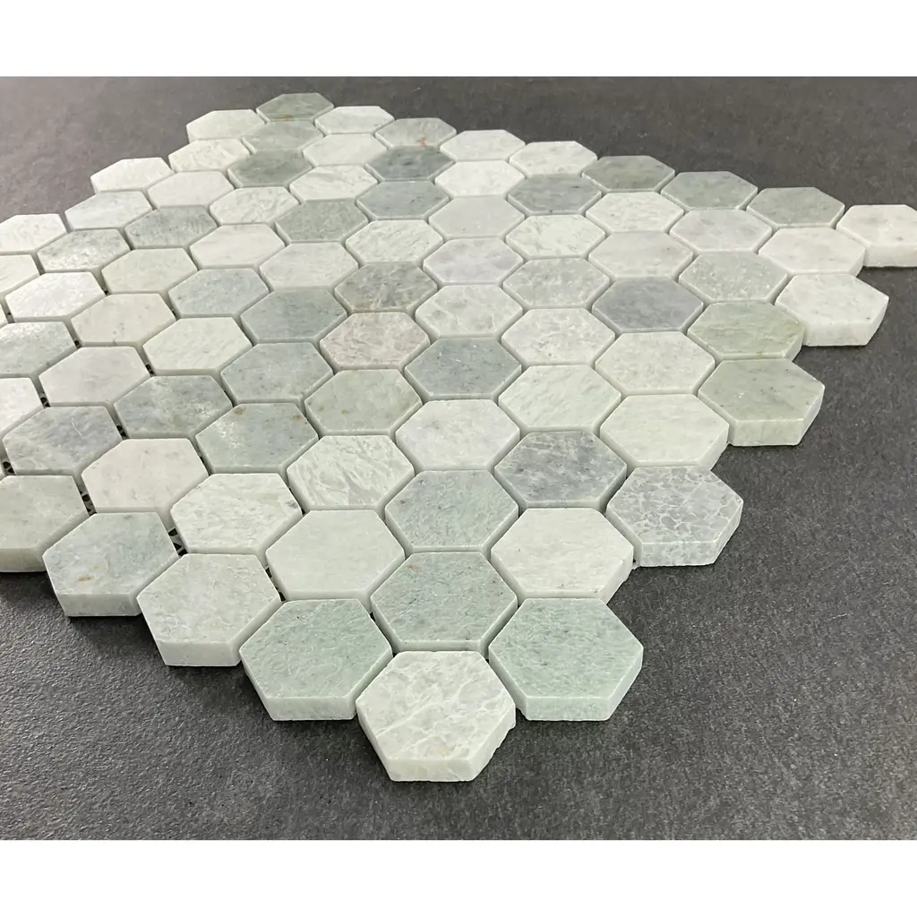 1 1/4" Hexagon Ming Green Marble Mosaic Wall & Floor Tile - 1 Case (10 Sheets) - Ming Green - 1 Case (10 Sheets)