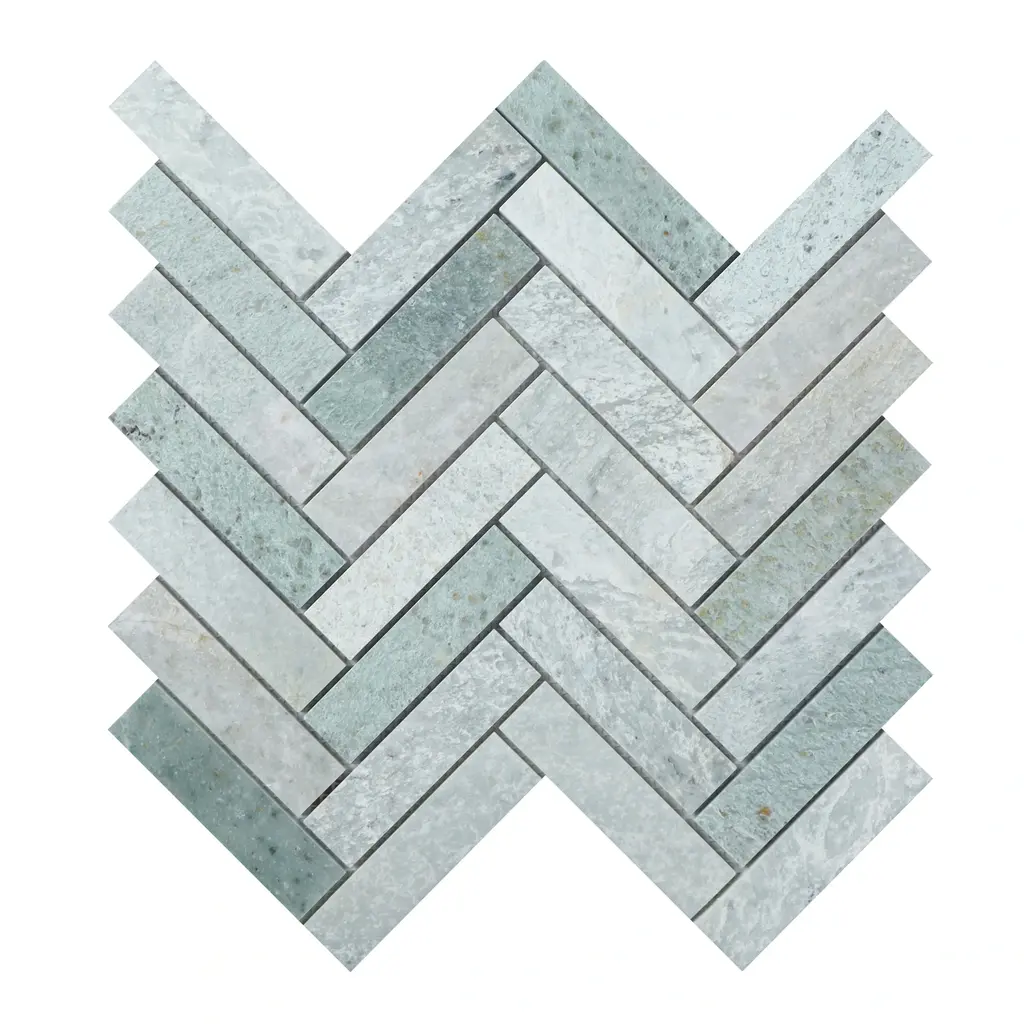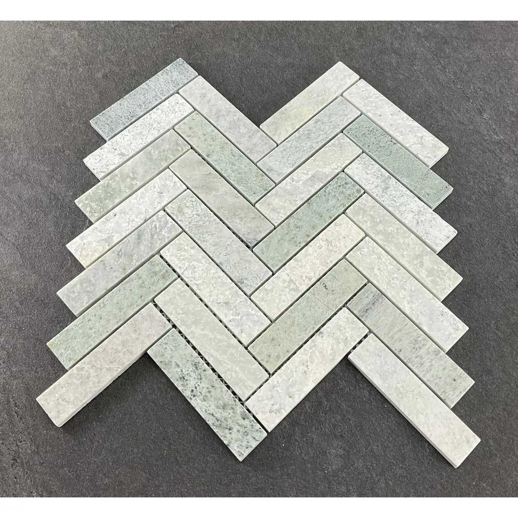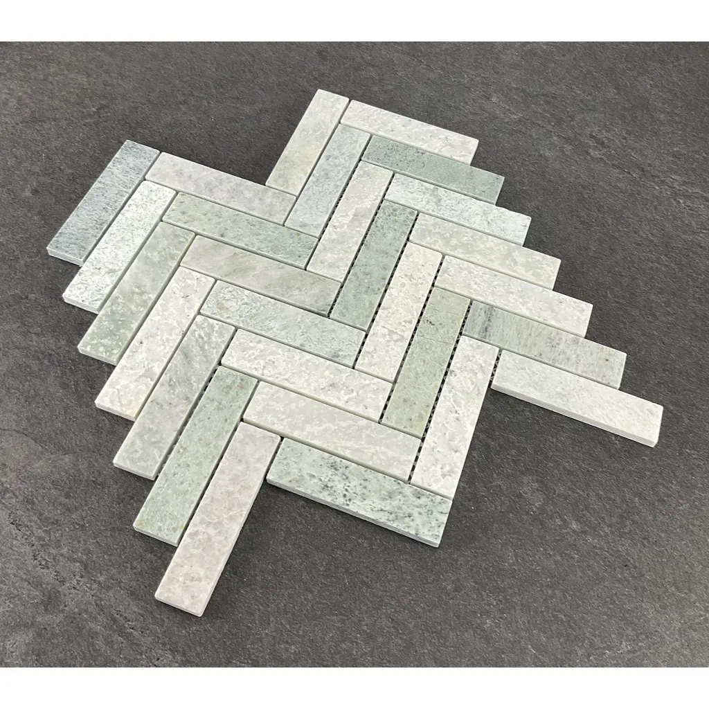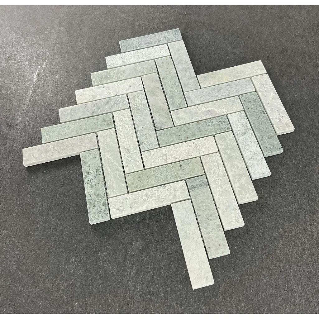 1 X 4 Harringbone Ming Green Marble Mosaic Wall & Floor Tile - 1 Case (10 Sheets) - Ming Green - 1 Case (10 Sheets)