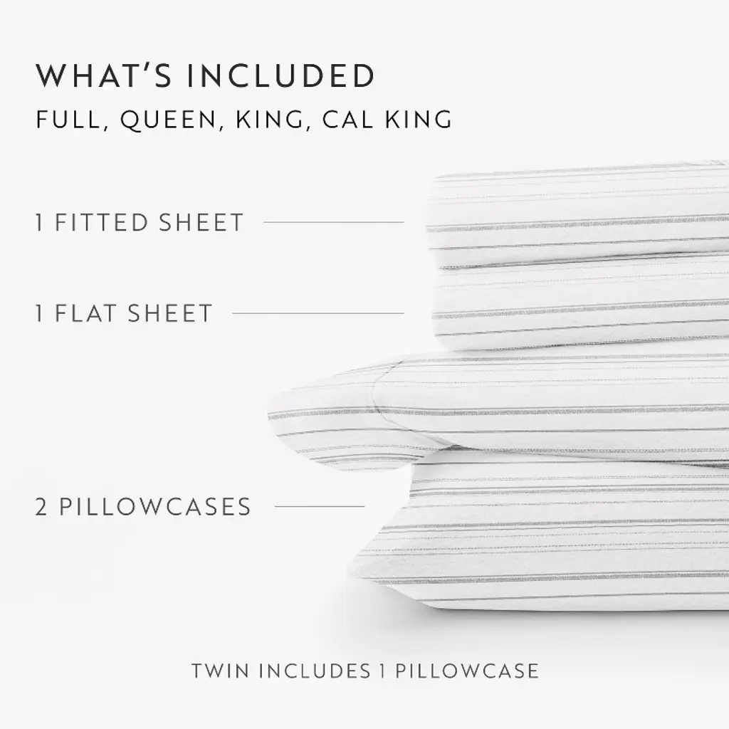 100% Cotton Flannel 3Pc Sheet Set Super Soft - Becky Cameron, Weathered Stripe Gray, Twin