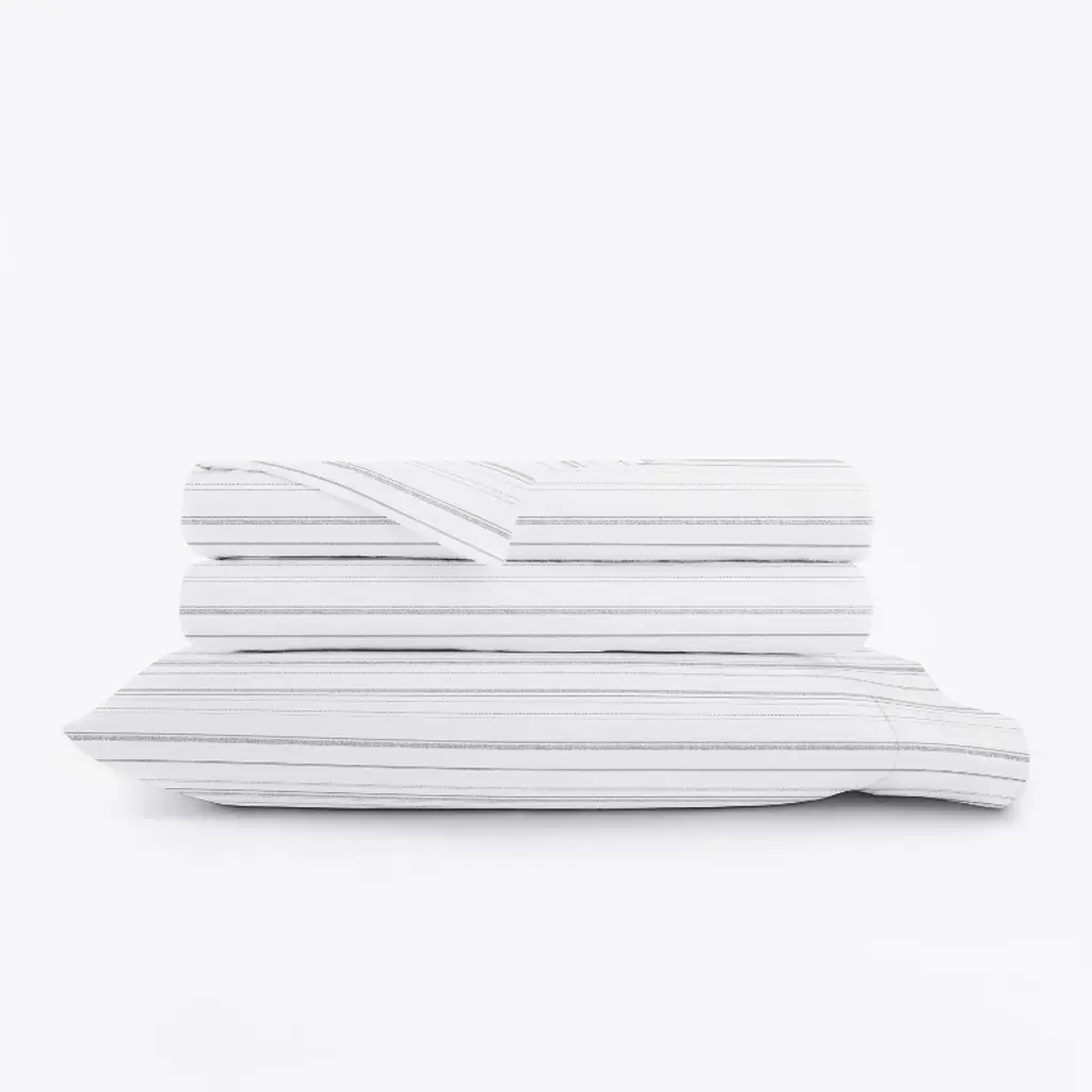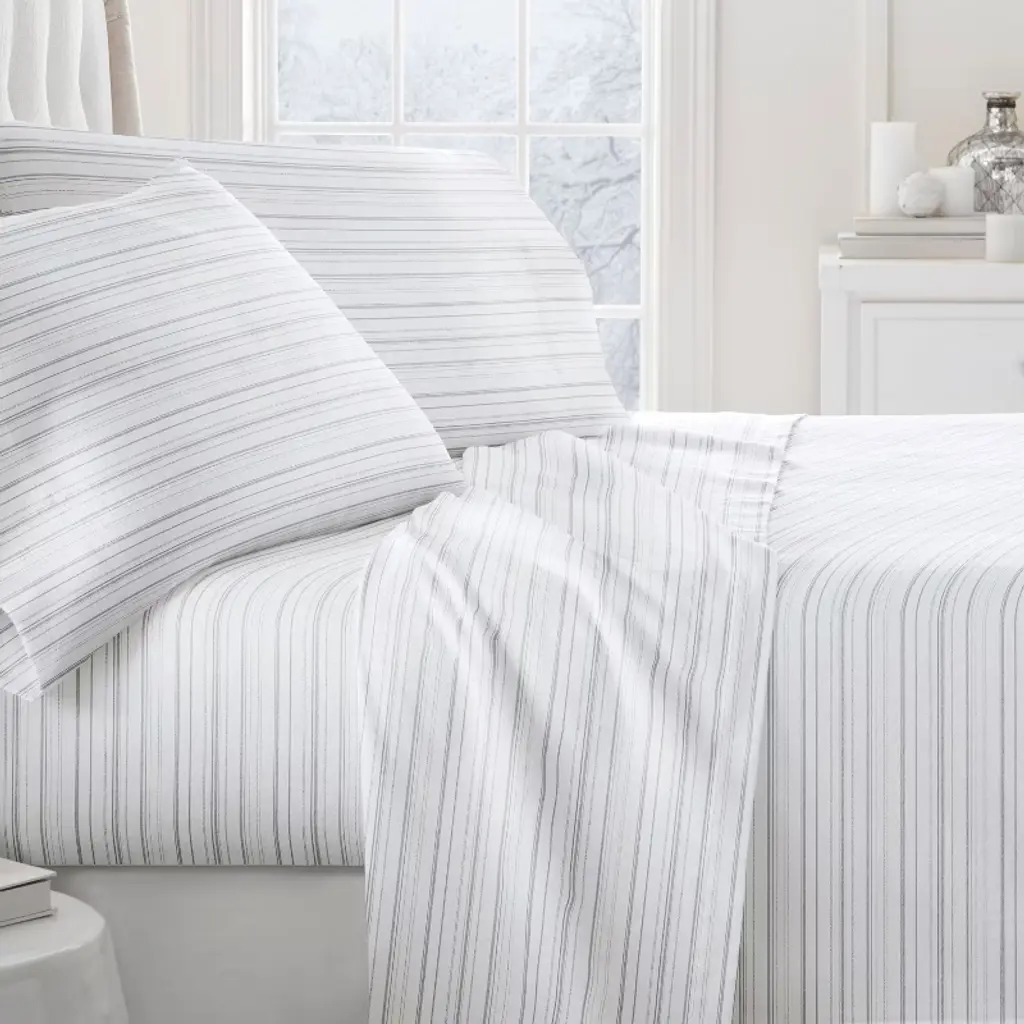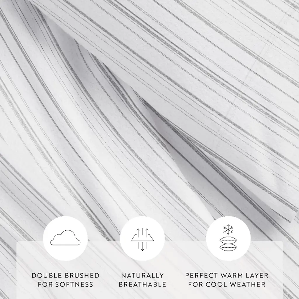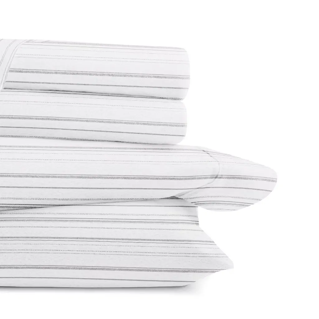 100% Cotton Flannel 4Pc Sheet Set Super Soft - Becky Cameron, Weathered Stripe Gray, California King