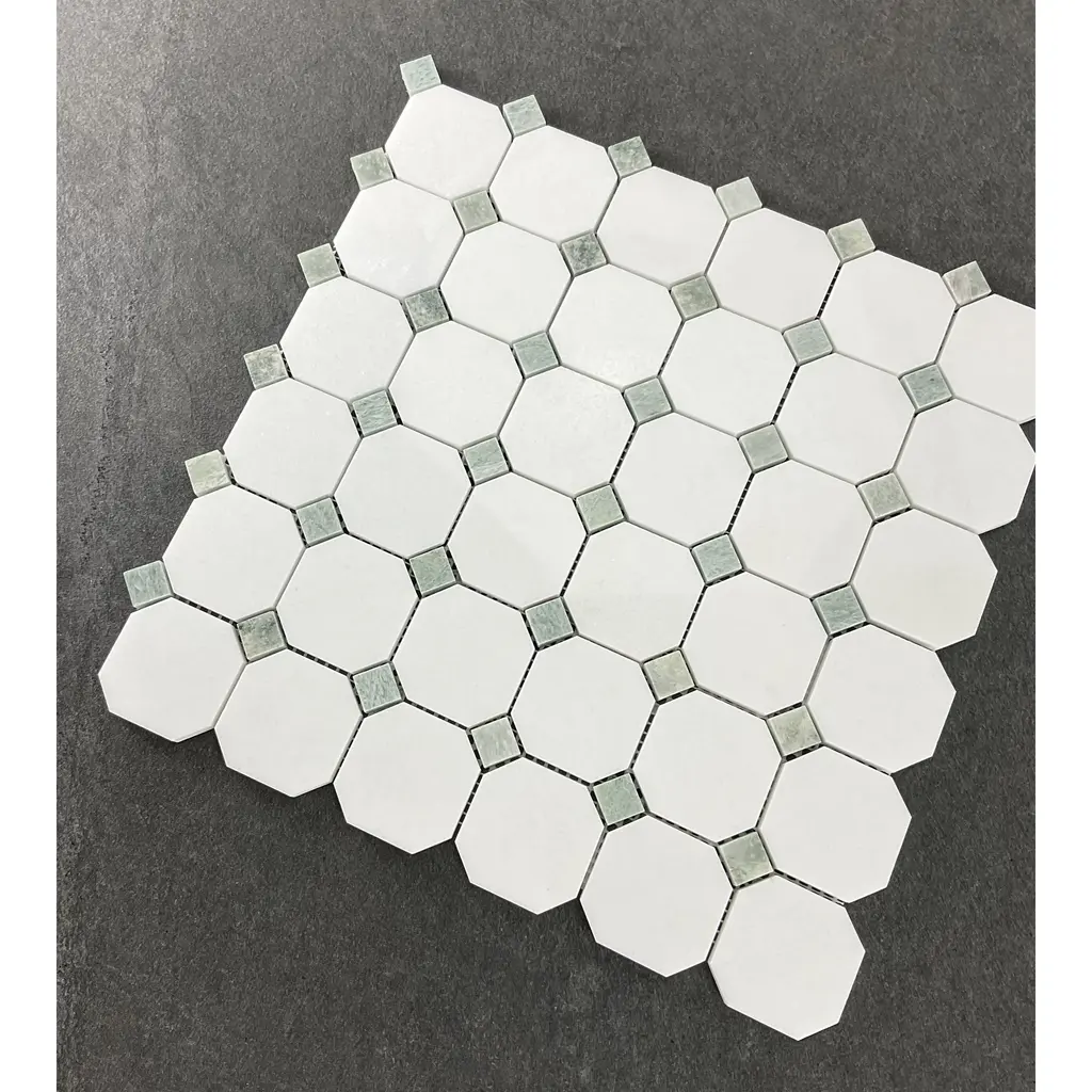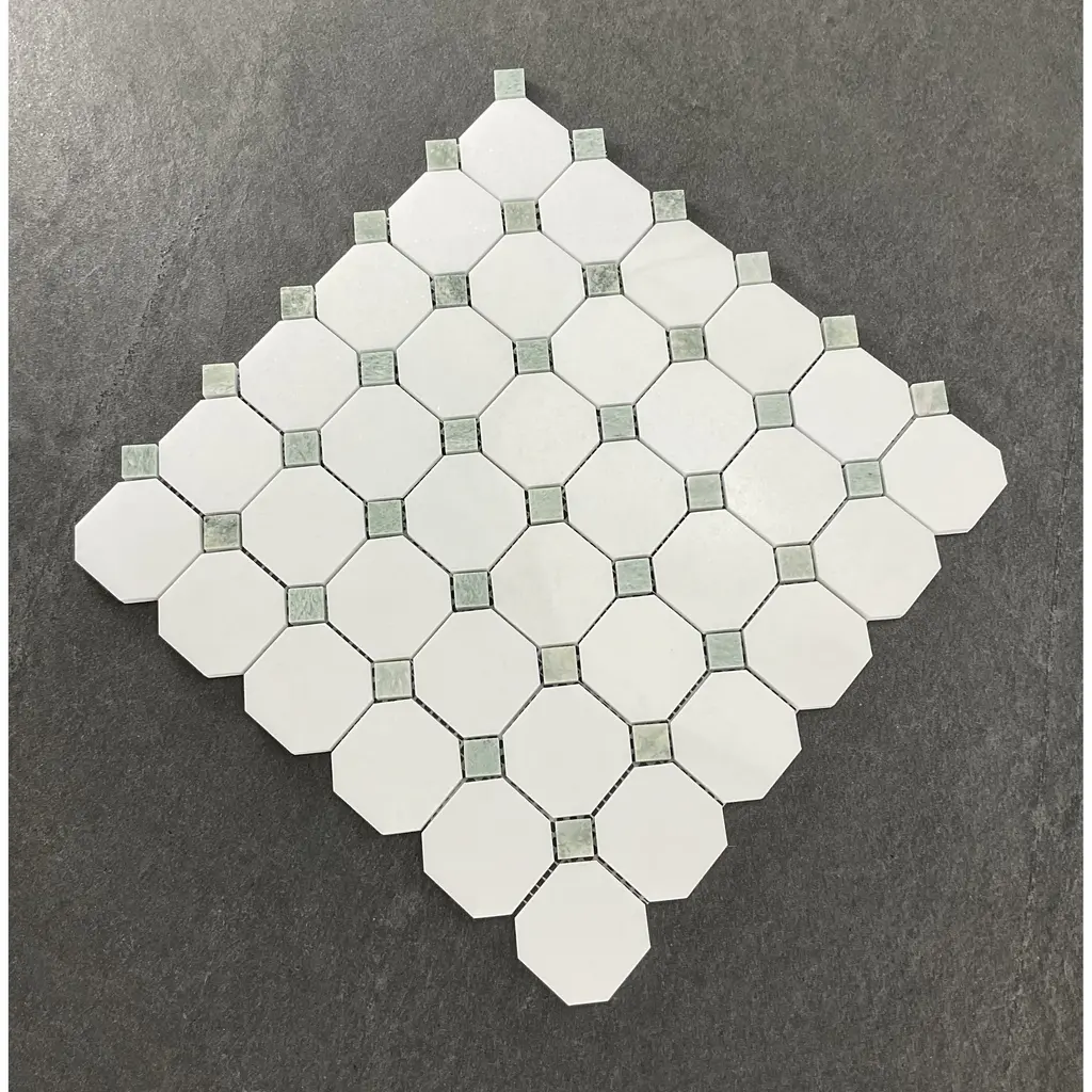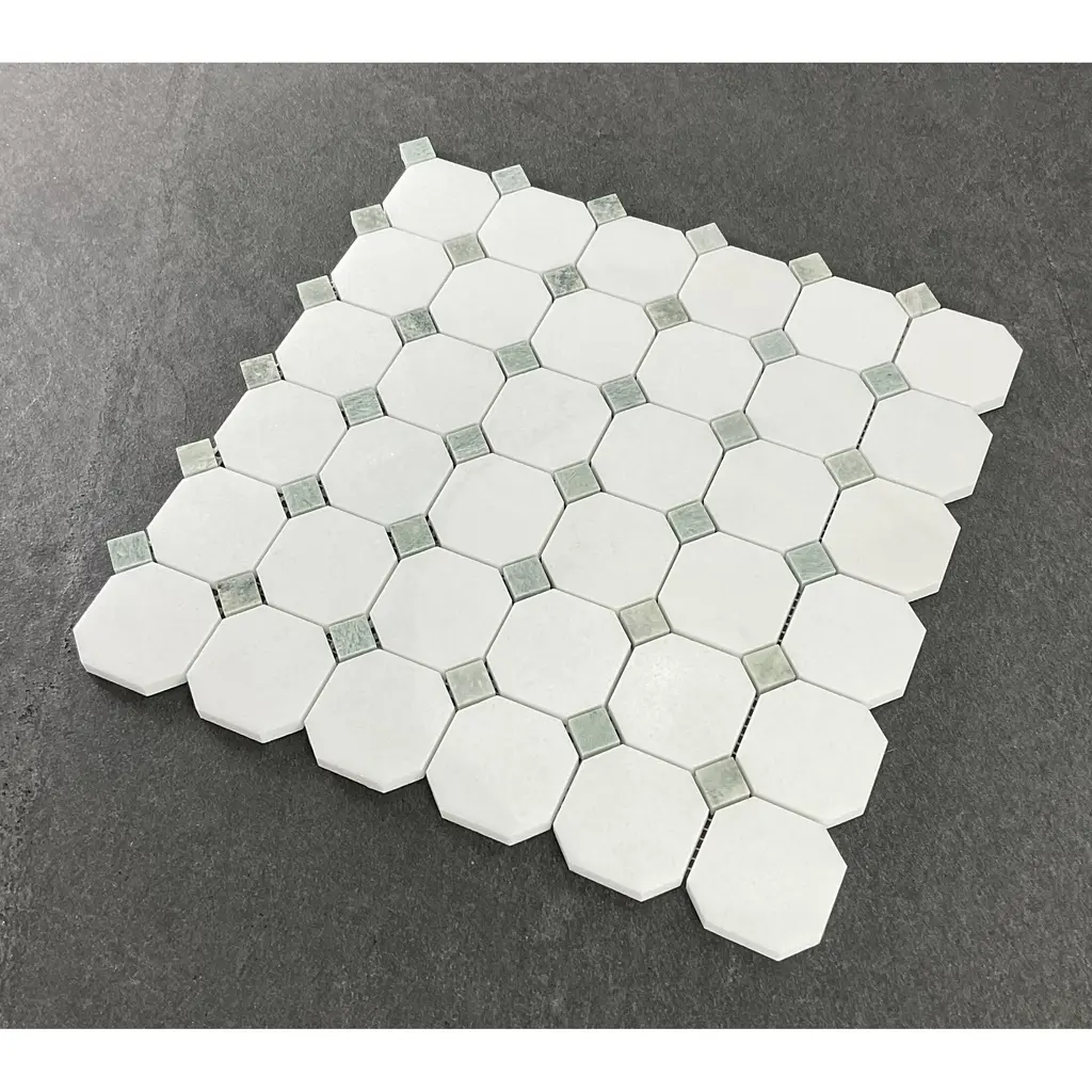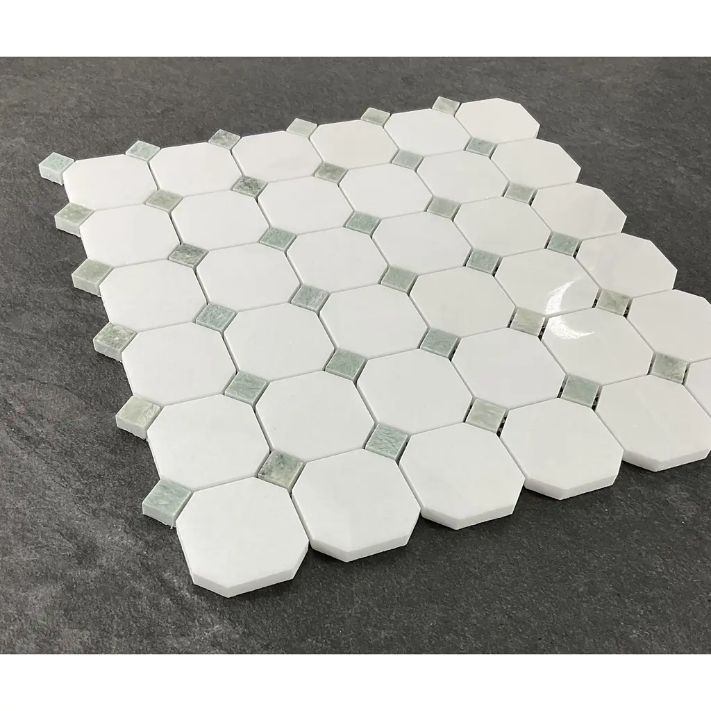 2" Octagon With Dot Marble Mosaic Tiles - Case (10 Sheets) - Case (10 Sheets) - Thassos White And Ming Green