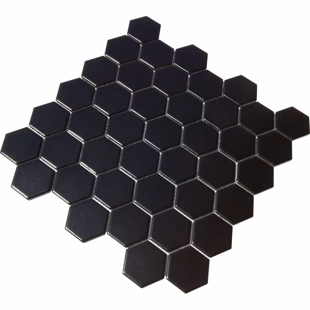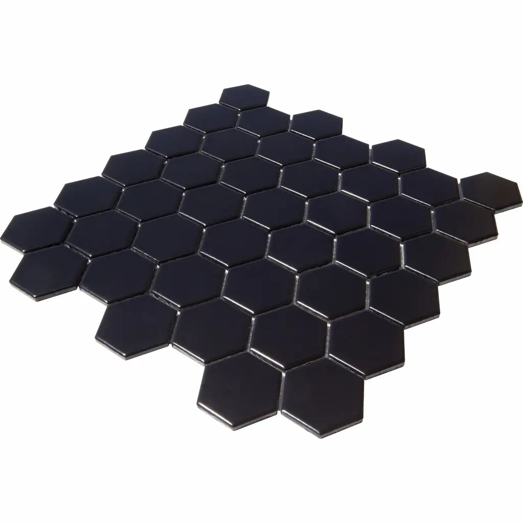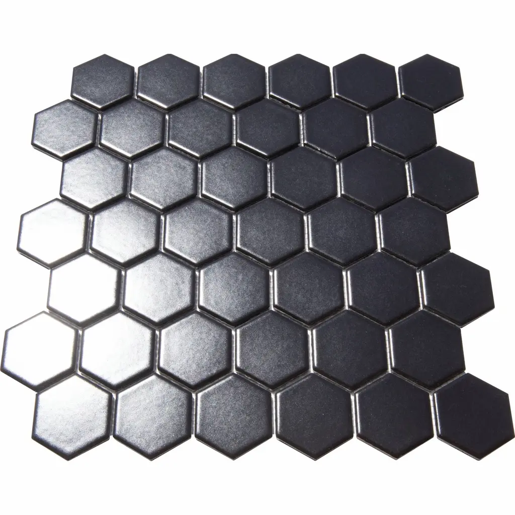 2" X 2" Hexagon Honeycomb Glossy Porceain Mosaic Tile - 5 Sheets (4.90 Sf) - Matte - Black