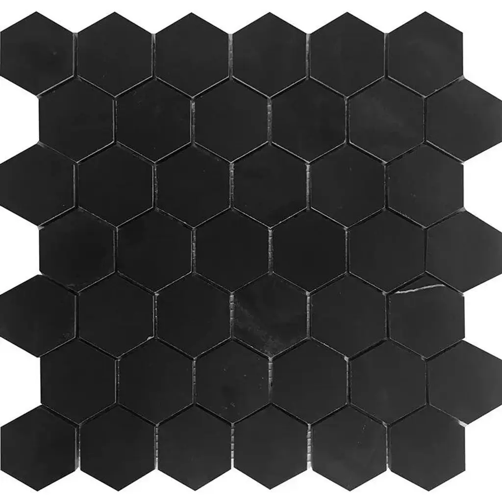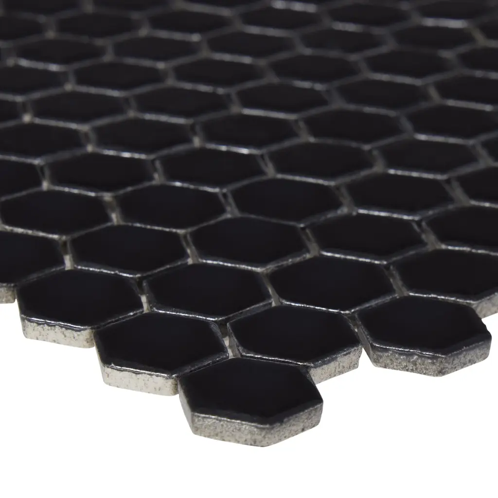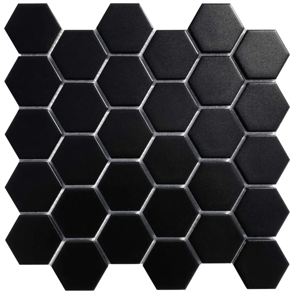 2" X 2" Hexagon Honeycomb Glossy Porceain Mosaic Tile - 5 Sheets (4.90 Sf) - Matte - Black